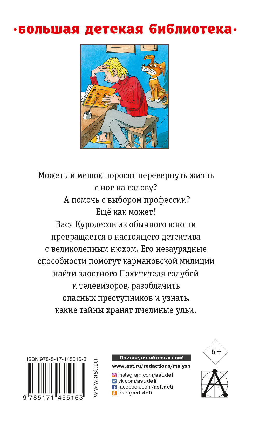 В книгу вошли три детективные повести Юрия Коваля: "Приключения Васи Куролесова", "Промах гражданина Лошакова" и "Пять похищенных монахов". Есть известная пословица: "Все дороги ведут в Рим", а в повестях Юрия Коваля немного иначе - все дороги ведут в город Карманов. На Кармановском колхозном рынке жизнь Васи Куролесова свернула в неизвестном направлении, и он купил пса вместо поросят. В Карманов же вместо Курска прибежал ограбленный гражданин Лошаков. Герои третьей повести тоже приехали в этот славный город искать похищенных монахов. И нашли! Правда не совсем тех… О необычайных происшествиях в Карманове, о доблестной милиции этого города, о Васе Куролесове и его удивительном носе читайте в нашей книжке. Для среднего школьного возраста.| Издательство | Издательство "АСТ" |