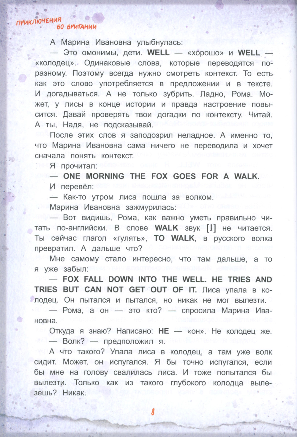 Нет таинственнее языка, чем английский. Слышится не так, как пишется, пишется не так, как читается. И вообще никак не переводится. По крайней мере, логически. Как такое выучить? Этим с начала второго класса мучается добрый фантазёр Рома, а вместе с ним его бабушка Галя, кот Кассий, учительница Марина Ивановна и весь второй «В». А вот если бы в программу второго класса входили языкознание и философия языка, то никто бы не мучился, а с интересом учил любой иностранный язык. Есть ли в языке логика? Откуда взялся вездесущий злодей Туманный Альбином? Кто отправил волков в колодцы разговаривать с мокрицами? Почему у жителей Британии крылатый хлеб и красные кошки? Всё это Роме и его вританскому другу Лису предстоит разгадать и расколдовать, чтобы спасти бабушку, Кассия и одноклассников от нашествия древних римлян. А заодно понять, почему нельзя запекать в пудинг жетоны на метро, а в рождественское печенье - билеты на самолёт. И выяснить, какую страшную тайну хранят все учителя английского с именем Марина Ивановна, но не расскажут о ней никогда. Эту сказку написала учительница английского языка, которая недавно вернулась из Британии, а потом успела выставить пятёрки за работу над ошибками до Нового года. Просто повезло. Книга адресована детям от 6 лет.| Издательство | Антология |