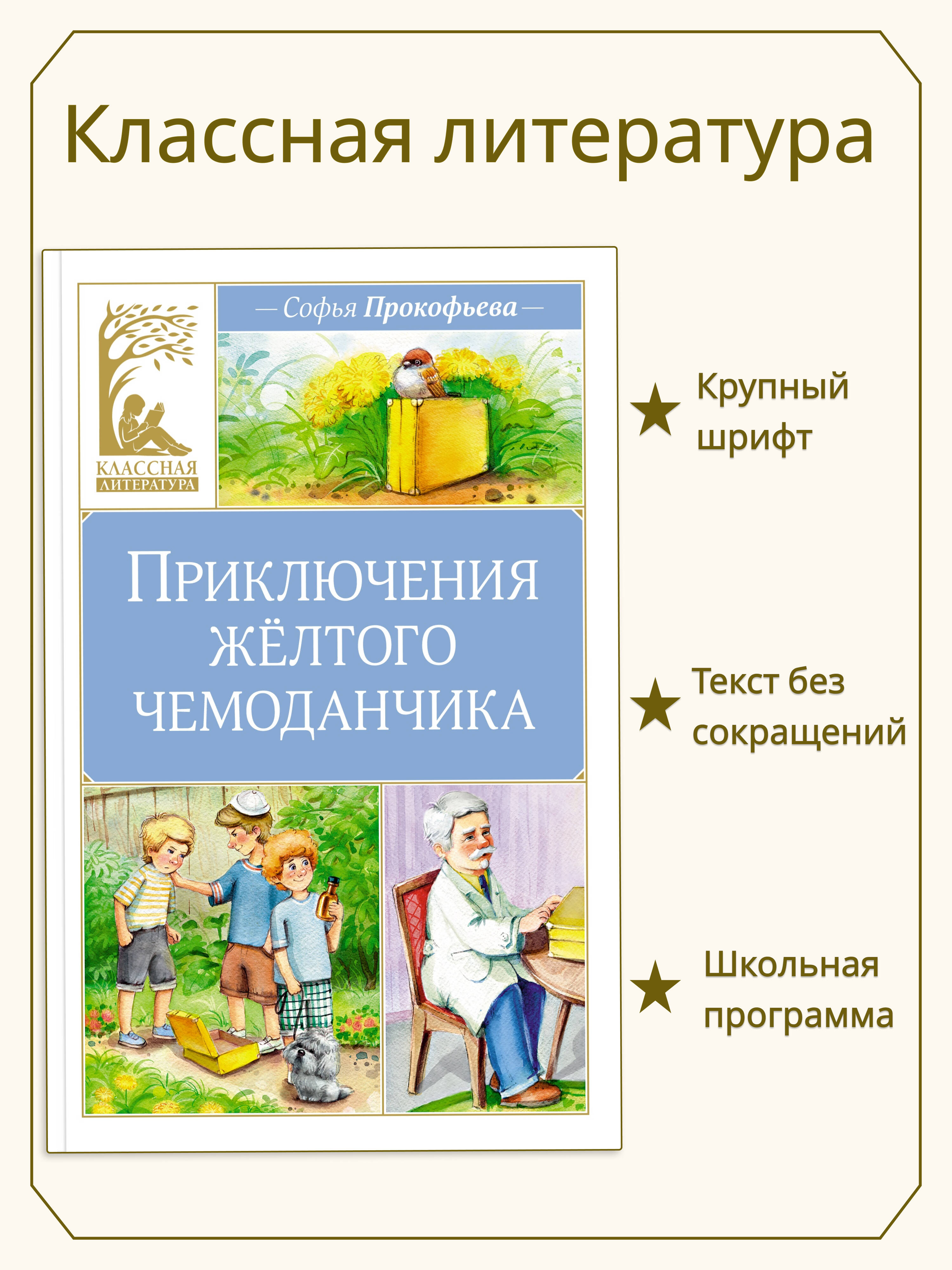 Желтый чемоданчик Доброго Доктора - настоящая сокровищница, в которой хранятся лекарства, способные излечить человека от любых недугов. Некоторые из них могут справиться с болтливостью, прогнать грусть или придать храбрости. По забавному стечению обстоятельств, врач теряет чемоданчик со всем содержимым. Теперь героям сказочной повести Софьи Прокофьевой предстоит отправиться на поиски утерянных лекарств, бросая вызов своим страхам и обретая по пути настоящих друзей.| Издательство | Азбука-Аттикус Издат.группа ООО |
