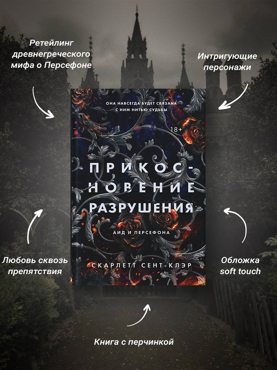 БЕСТСЕЛЛЕР AMAZON. «Прикосновение разрушения» - вторая книга романтического фэнтези-цикла, который является авторской интерпретацией истории «Аиды и Персефоны». Волшебный мир, где среди людей живут древнегреческие боги. Во второй части вас ждет еще больше горячих сцен! После воссоединения Персефоны с Аидом их фотографии оказались во всех СМИ. Чтобы сохранить божественные чары, Персефоне предстоит сделать сложный выбор. Она должна дать эксклюзивное интервью о своей личной жизни или потерять любимую работу. К тому же неожиданная трагедия заставляет ее заключить с богами сделку, цена которой оказывается слишком высока. Сможет ли Персефона выдержать тяжелые испытания и стать истинной королевой подземного царства? Для фанатов Сары Дж Маас, Дженнифер Арментроут и Рэйвен Кеннеди. Об авторе Скарлетт Сент-Клэр - американская писательница. Она является магистром библиотековедения и информационной науки. Скарлетт одержима греческой мифологией, детективными историями, любовью и загробной жизнью. Если все это интересно и вам, ее книги вам непременно понравятся.| Издательство | Эксмо |