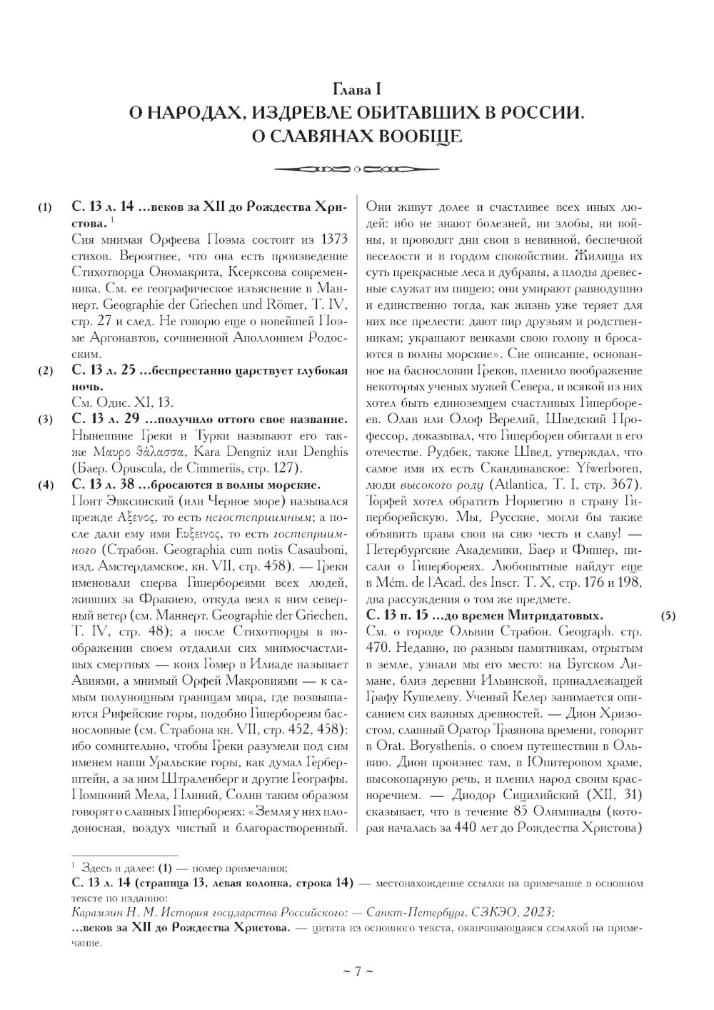 Первые восемь томов уникальной «Истории» Николая Михайловича Карамзина (1766-1826) были опубликованы в 1818 году в количестве трех тысяч экземпляров. По тем временам это был рискованно гигантский тираж. Цена всех книг серии также была огромной - 50 рублей; в два раза больше месячной зарплаты приказчика. Однако менее чем за месяц все книги были распроданы! Историей Карамзина зачитывалась буквально вся просвещенная публика того времени, ведь так об отечественной истории ранее не писал никто. И дело было не только в великолепном знании древних рукописей, которые Карамзин изучал много лет в архивах Синода, Эрмитажа, Академии наук, Публичной библиотеки, Московского университета и в стенах Троице-Сергиевой лавры, н не только в беспристрастном изложении событий, за которое консерваторы считали «Историю» сочинением опасным, а либералы - проповедью монархизма. На публику в первую очередь производил впечатление сам стиль изложения Карамзина. Ведь до того, как засесть за этот гигантский труд, автор проделал огромную работу по модернизации литературного языка своего времени. Он сделал его живым, разговорным. Неслучайно написанные им в конце XVIII века «Письма русского путешественника» сразу принесли ему славу талантливого литератора. Однако позже Карамзин прервал сочинение беллетристики и, по его же собственным словам, «постригся в историка». Он был уверен, что систематическое н полное изложение отечественной истории со всеми ее светлыми и темными страницами неизмеримо важнее для формирования гражданского сознания, чем любые литературные поделки. Недаром и в наши дни «История» Карамзина составляет тот прочный фундамент, на которым опираются все современные сочинения, повествующие об истории нашей страны. При жизни Карамзин успел довести свой труд до описания конца Смутного времени. Позже все двенадцать томов его «Истории» неоднократно перепечатывались. Создавая свою «Историю государства Российского», Карамзин делал множество примечании и выписок, имеющих большое научное значение. Однако они значительно увеличивали объем многотомного издания, поэтому эти многочисленные детали и подробности автор решил вынести в отдельным том примечаний, который вы держите в руках. Знакомство с этой книгой расширит ваше восприятие «Истории государства Российского».| Издательство | СЗКЭО |