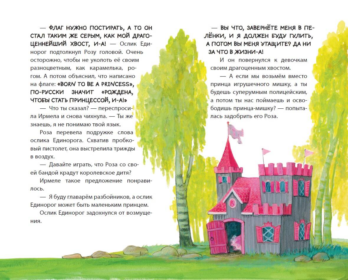 ПРОДОЛЖЕНИЕ ВЕСЁЛОЙ, ОЗОРНОЙ И ТРОГАТЕЛЬНОЙ СЕРИИ О ПРИНЦЕССЕ-БУНТАРКЕ! Теперь у Розы есть настоящий друг - Ослик по имени Единорог. Вместе они готовы к новым невероятным приключениям: от загадочного незнакомца на колокольчиковой поляне до поимки таинственного похитителя пирожных. Над книгой с вдохновением работали детская писательница Аннетте Рёдер и один из самых любимых иллюстраторов Германии - Катрин Энгелькинг. Вместе они создали живой и волшебный мир, в котором столько уюта, юмора и задора, что хочется задержаться подольше на каждой странице. Издание украшено блестящим глиттерным лаком, а внутри - белые страницы, комфортный для глаз шрифт и задорные цветные иллюстрации почти на каждом развороте. Удобный формат делает книгу отличным спутником как для чтения дома, так и в дороге. Это чудесный подарок для каждого ребёнка, который мечтает о сказке с характером! Особенно интересна она будет маленьким читателям 7-10 лет. Как и раньше, Роза остаётся самой неугомонной девочкой в округе - она бесстрашна, любопытна и никогда не проходит мимо, когда кому-то нужна помощь. Эта история снова доказывает, что смелость, доброта и настоящая дружба - важнее любой короны.| Издательство | ООО "Издательство "Эксмо" |