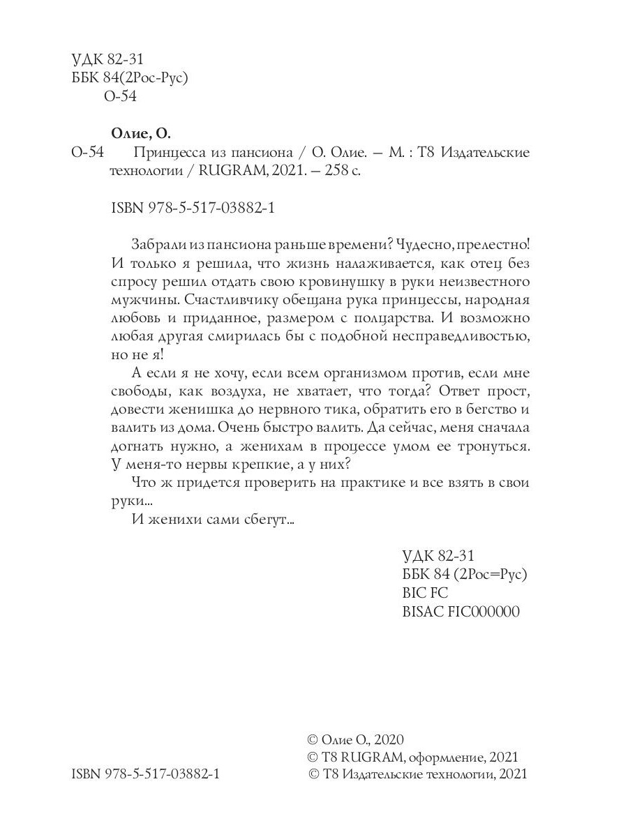 Забрали из пансиона раньше времени? Чудесно, прелестно! И только я решила, что жизнь налаживается, как отец без спросу решил отдать свою кровинушку в руки неизвестного мужчины. Счастливчику обещана рука принцессы, народная любовь и приданное, размером с полцарства. И возможно любая другая смирилась бы с подобной несправедливостью, но не я! А если я не хочу, если всем организмом против, если мне свободы, как воздуха, не хватает, что тогда? Ответ прост, довести женишка до нервного тика, обратить его в бегство и валить из дома. Очень быстро валить. Да сейчас, меня сначала догнать нужно, а женихам в процессе умом ее тронуться. У меня-то нервы крепкие, а у них? Что ж придется проверить на практике и все взять в свои руки... И женихи сами сбегут...| Издательство | Т8 RUGRAM |