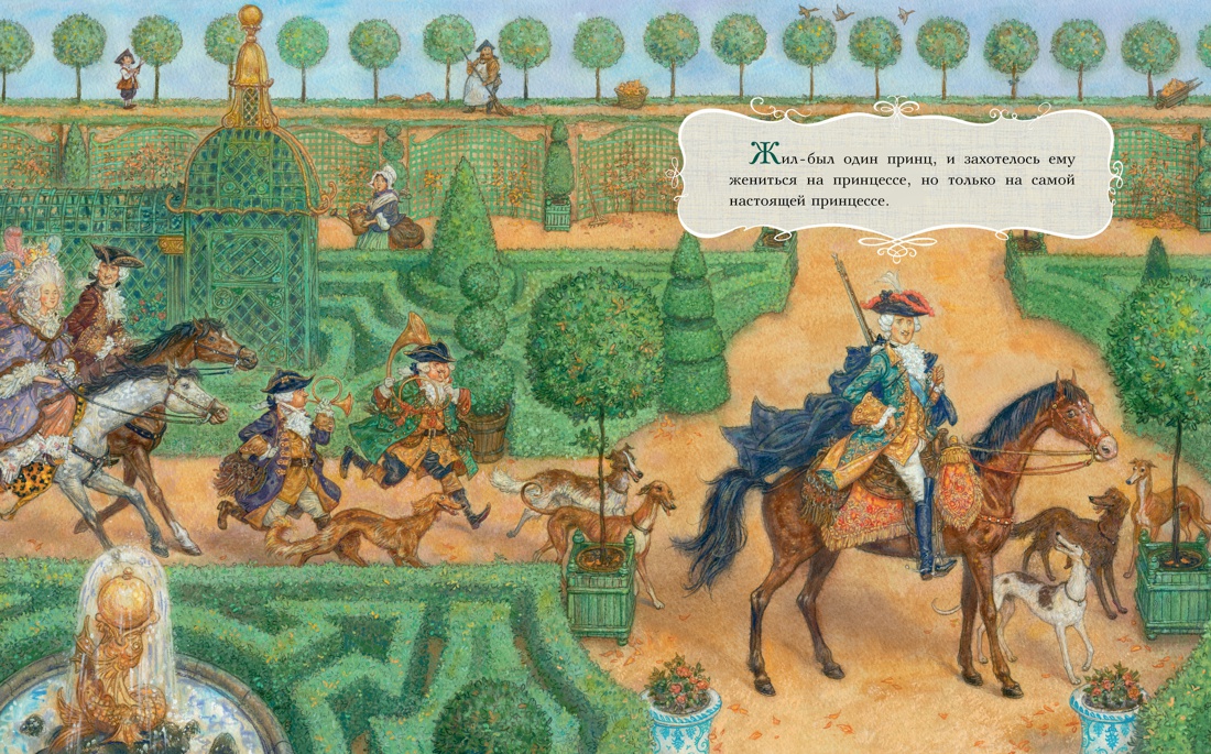 «Принцесса на горошине» - одна из самых известных сказок Ханса Кристиана Андерсена. Небольшая и изящная, она затрагивает очень важную и непростую тему: как отличить настоящее от подделки? И в ответе великого сказочника - улыбка, добрая и чуть-чуть ироничная. Книги рождаются по-разному: появлению одной предшествует множество эскизов и переделок, другая так и бежит из-под кисти. А идея этой книжки, по свидетельству художника Антона Ломаева, осенила его во время прогулки по пригородному парку в один из последних осенних солнечных дней. И это неудивительно: ведь когда-то по его дорожкам ходили настоящие императоры и императрицы, принцы и принцессы, фрейлины и придворные…| Издательство | Азбука |
