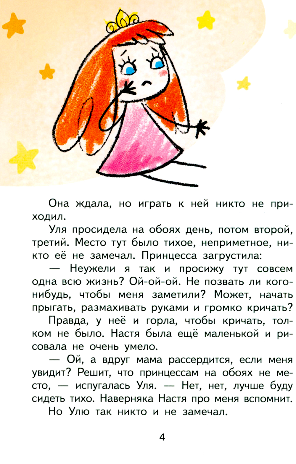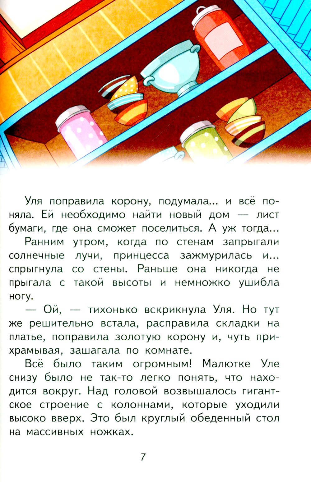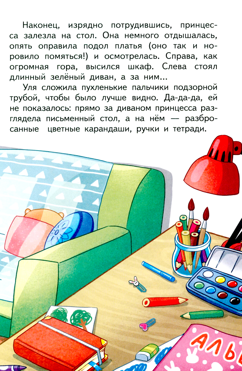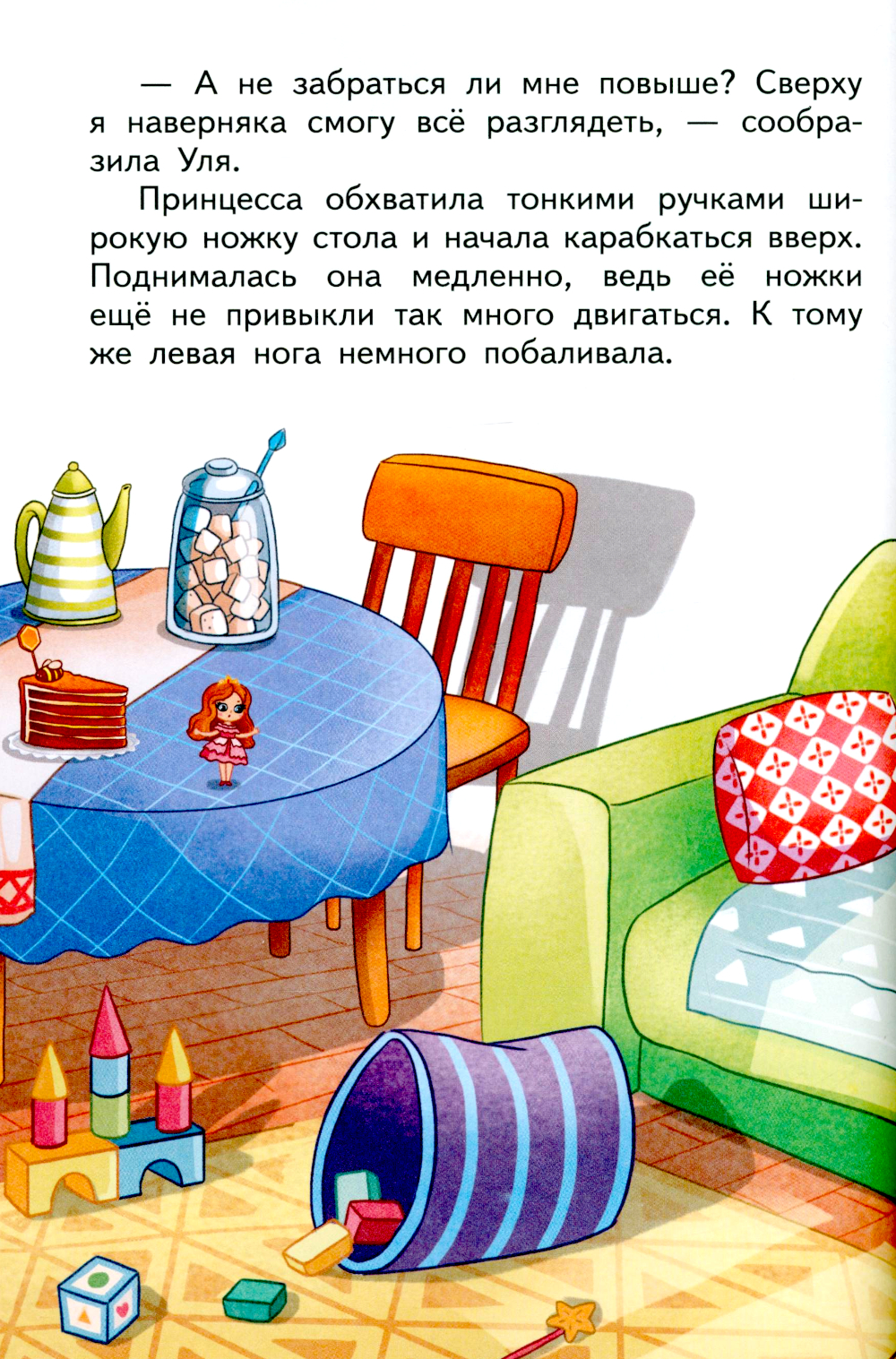Вы знаете, о чём мечтают сказочные принцессы? Принцесса Уля, нарисованная на обоях, мечтала найти такое место, где ей будут любоваться. Чтобы исполнить свою мечту, Уля отправилась в опасное путешествие - и нашла не только новый дом, но и настоящих друзей. Сказка перенесёт ребёнка в необыкновенный мир обычной комнаты, научит видеть волшебство в привычных вещах, быть отважным, ценить и проявлять доброту и отзывчивость, дружить и смело идти к своей цели.| Издательство | Просвещение |