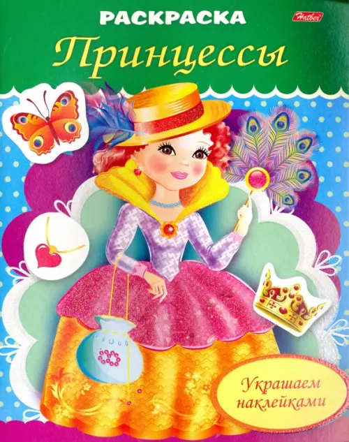 Раскраска "Принцесса с веером" для детей дошкольного возраста. С наклейками.