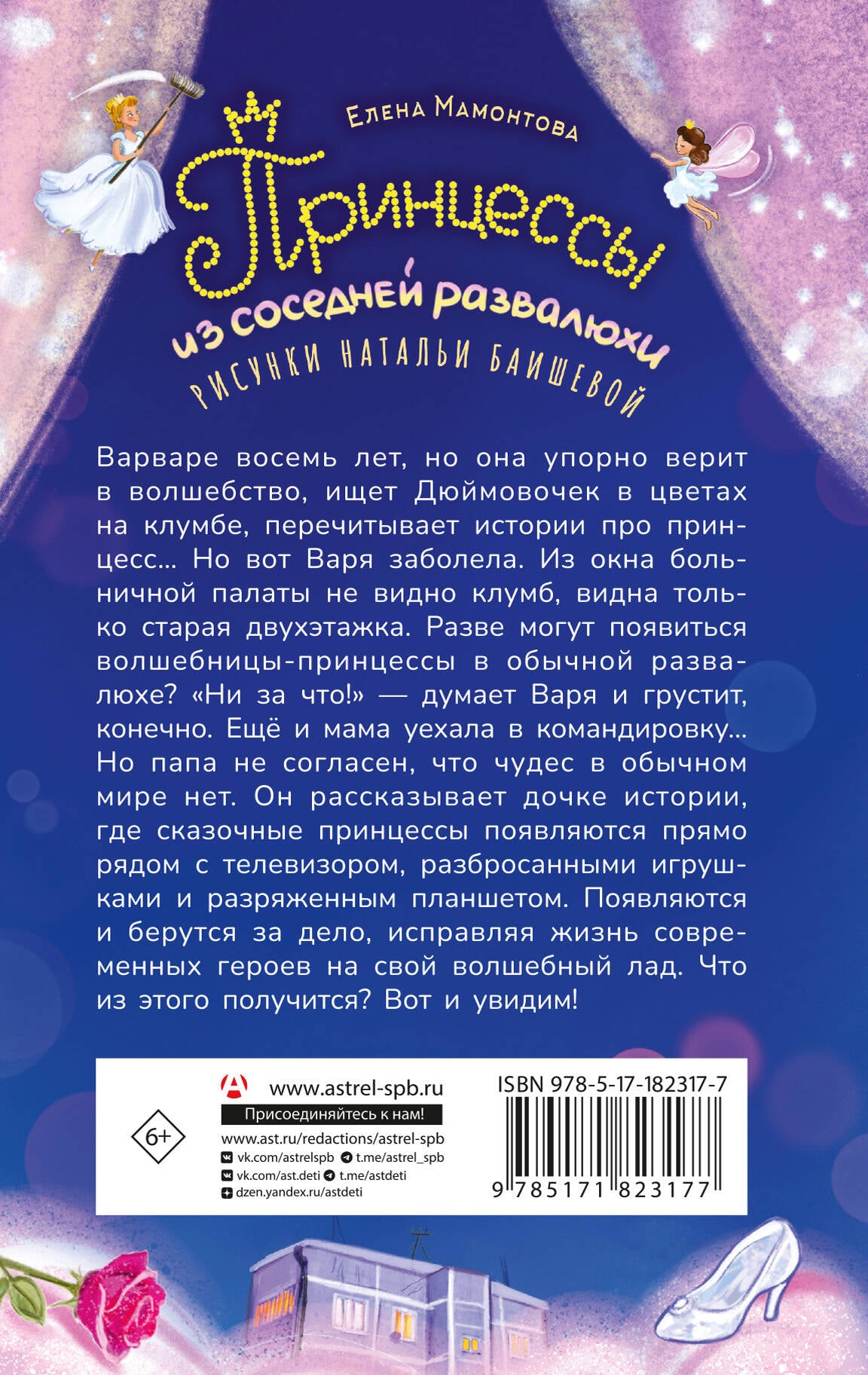 Причины купить книгу Елены Мамонтовой «Принцессы из соседней развалюхи»: - Возможность увидеть Золушку, Золотую рыбку и Дюймовочку прямо в своей квартире. - Убедиться, что в обычной жизни есть место чуду, хотя и не всегда такому, как ожидаешь. - Вдоволь нахохотаться над тем, как сказочные принцессы решают проблемы современного мира. - Улыбнуться живым и непосредственным рисункам Натальи Баишевой. - Поверить, что волшебные истории могут случиться со всеми и везде.| Издательство | Издательство "АСТ" |