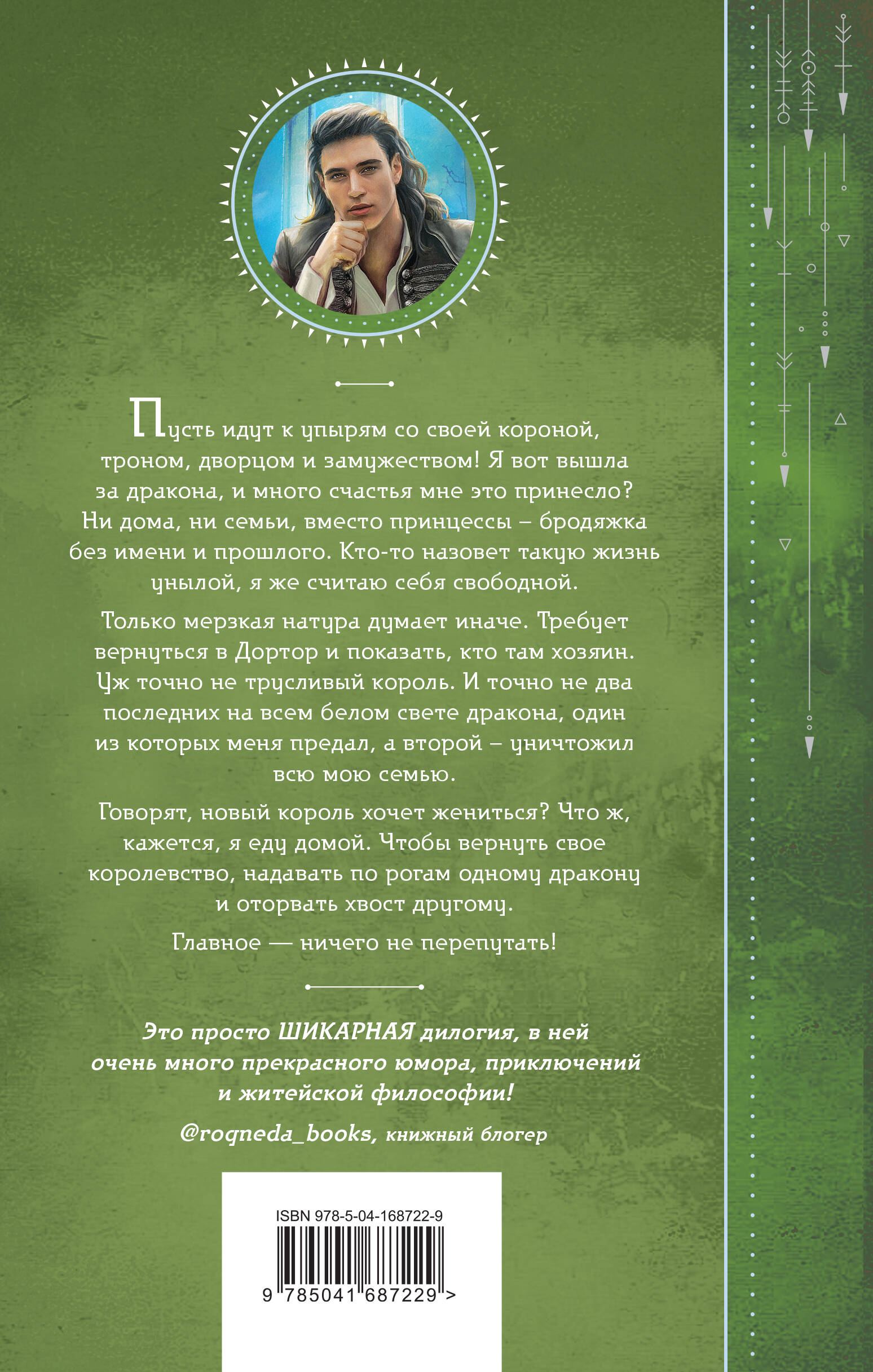 Пусть идут к упырям со своей короной, троном, дворцом и замужеством! Я вот вышла за дракона, и много счастья мне это принесло? Ни дома, ни семьи, вместо принцессы - бродяжка без имени и прошлого. Кто-то назовет такую жизнь унылой, я же считаю себя свободной. Только мерзкая натура думает иначе. Требует вернуться в Дортор и показать, кто там хозяин. Уж точно не трусливый король. И точно не два последних на всем белом свете дракона, один из которых меня предал, а второй - уничтожил всю мою семью. Говорят, новый король хочет жениться? Что ж, кажется, я еду домой. Чтобы вернуть свое королевство, надавать по рогам одному дракону и оторвать хвост другому. Главное - ничего не перепутать! 1. Любимая многими тема о взаимоотношениях принцесс и драконов! 2. Заключительная часть дилогии. Продолжение юмористического бестселлера о том, как одинокий дракон и взбалмошная принцесса обрели друг друга. 3. Приключения продолжаются: герои повзрослели, но не утратили оптимизм. 4. Фэнтези-сказка о взрослении, семье и настоящей любви. 5. Если вы были в шоке от концовки первой части, самое время прочесть вторую: хеппи-энд неизбежен!| Издательство | ООО "Издательство "Эксмо" |