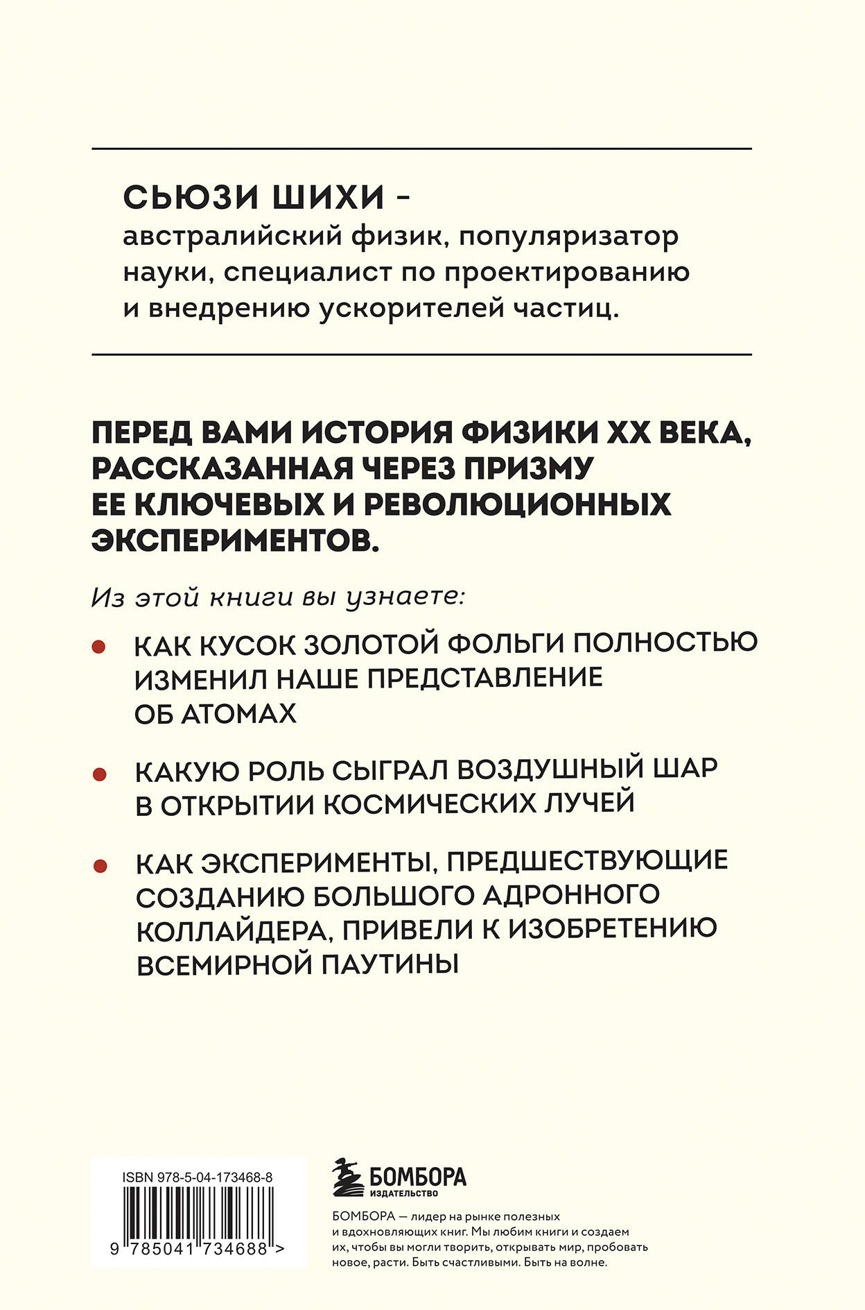 Перед вами - история экспериментов и открытий физики элементарных частиц, физики ХХ века. Вы узнаете, какой путь проделал пытливый и критически настроенный ум ученых от обнаружения частиц, волн и лучей, до создания и использования сложнейших современных приборов и технологий. Автор рассказывает нам, как через десятки версий и сотни экспериментов шли к грандиозным научным результатам Нильс Бор, Пьер и Мария Кюри, Роберт Уилсон и Питер Хиггс, Эйнштейн и Резерфорд, как изучалось строение атома и квант света, были созданы электронно-лучевая трубка и ускорители частиц, построен большой адронный коллайдер и проектируются приборы, которые приведут науку к новым открытиям. Все это неоспоримо свидетельствует о том, что именно научные исследования и эксперименты делают наш мир таким, какой он есть.| Издательство | ООО "Издательство "Эксмо" |