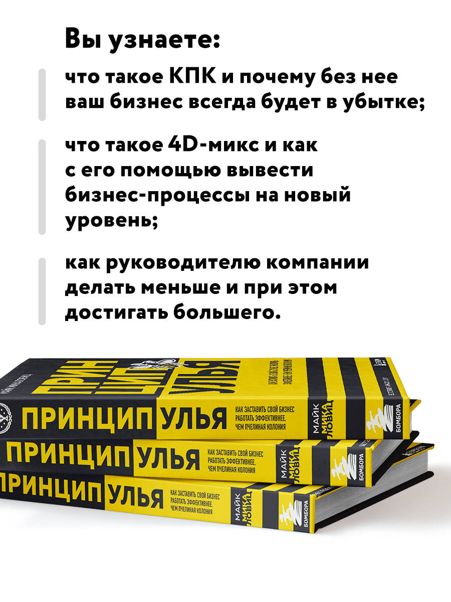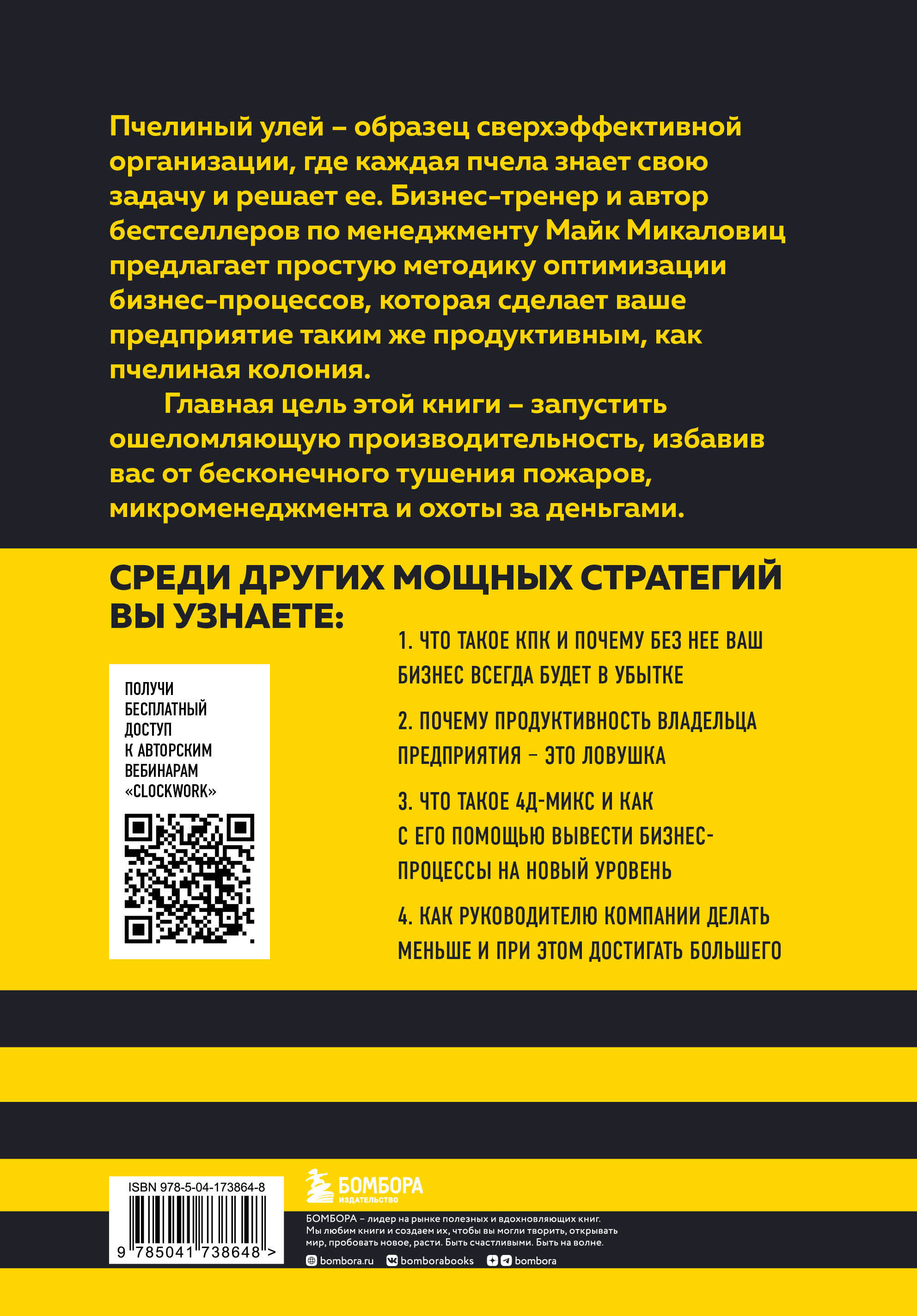 Пчелиный улей - образец сверхэффективной организации, где каждая пчела знает свою задачу и решает ее. Бизнес-тренер и автор бестселлеров по менеджменту Майк Микаловиц предлагает простую методику оптимизации бизнес-процессов, которая сделает ваше предприятие таким же продуктивным, как пчелиная колония. Главная цель этой книги - запустить ошеломляющую производительность, избавив вас от бесконечного тушения пожаров, микроменеджмента и охоты за деньгами. СРЕДИ ДРУГИХ МОЩНЫХ СТРАТЕГИЙ ВЫ УЗНАЕТЕ: 1. ЧТО ТАКОЕ КПК И ПОЧЕМУ БЕЗ НЕЕ ВАШ БИЗНЕС ВСЕГДА БУДЕТ В УБЫТКЕ. 2. ПОЧЕМУ ПРОДУКТИВНОСТЬ ВЛАДЕЛЬЦА ПРЕДПРИЯТИЯ - ЭТО ЛОВУШКА. 3. ЧТО ТАКОЕ 4D-МИКС И КАК С ЕГО ПОМОЩЬЮ ВЫВЕСТИ БИЗНЕС-ПРОЦЕССЫ НА НОВЫЙ УРОВЕНЬ. 4. КАК РУКОВОДИТЕЛЮ КОМПАНИИ ДЕЛАТЬ МЕНЬШЕ И ПРИ ЭТОМ ДОСТИГАТЬ БОЛЬШЕГО.| Издательство | ООО "Издательство "Эксмо" |
