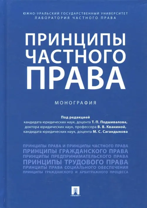 Монография посвящена исследованию вопросов становления, характеристики, содержания и реализации принципов частного права. В книге дана общая характеристика принципов частного права; рассмотрены современные проблемы действия отдельных принципов гражданского права, предпринимательского права, трудового права и права социального обеспечения. Значительная часть работы посвящена рассмотрению вопросов реализации принципов частного права. Большое внимание уделено проблеме систематизации и иерархической связи принципов частного права. В работе приведена и проанализирована судебная практика, предлагаются решения актуальных проблем, связанных с реализацией принципов частного права. Законодательство приводится по состоянию на ноябрь 2017 г. Монография предназначена для преподавателей, аспирантов, магистрантов юридических вузов и факультетов, а также научных работников, занимающихся проблемами частного права, и практикующих юристов.