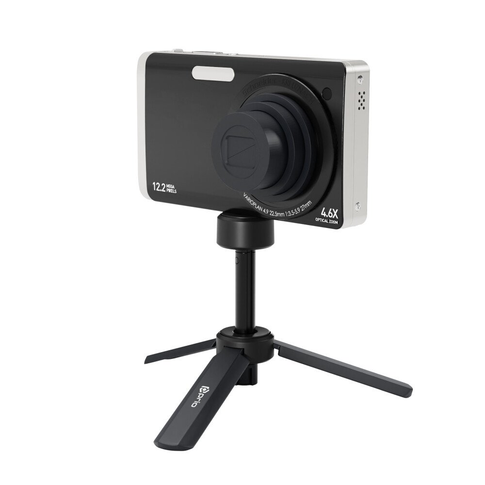 Его 1/4-дюймовый винт позволяет устанавливать любую цифровую камеру (до 600 г) или держатель телефона/камеры с такой же резьбой.