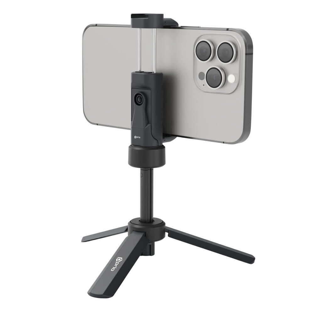 Штатив регулируется в диапазоне 15-24 см. Его держатель для телефона можно поворачивать на 360°, а также превращать в портретный или альбомный формат.
