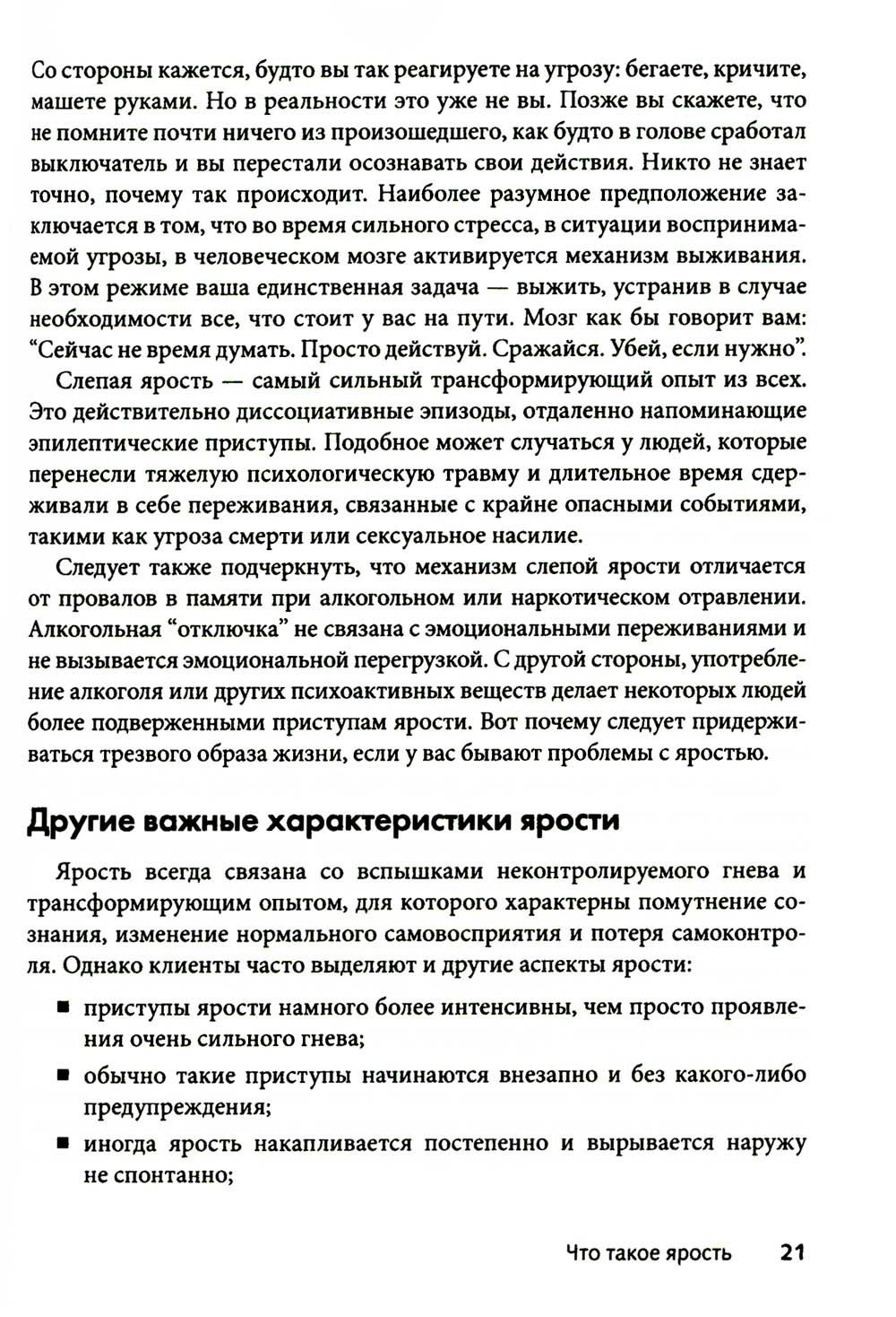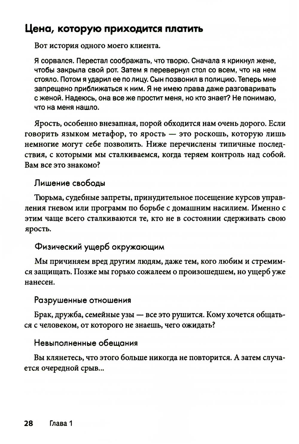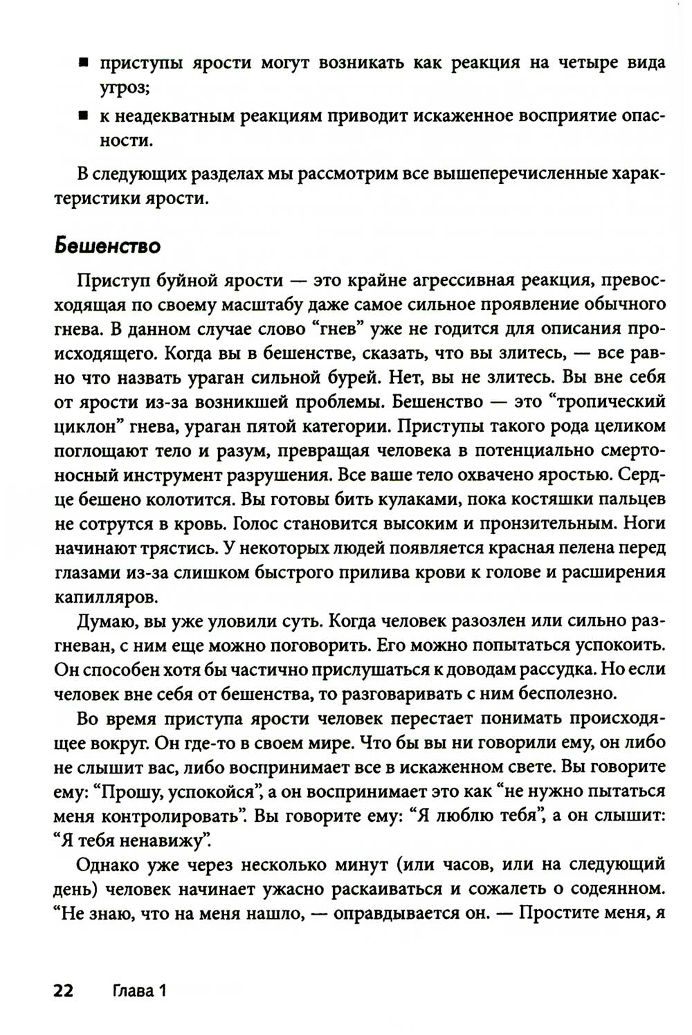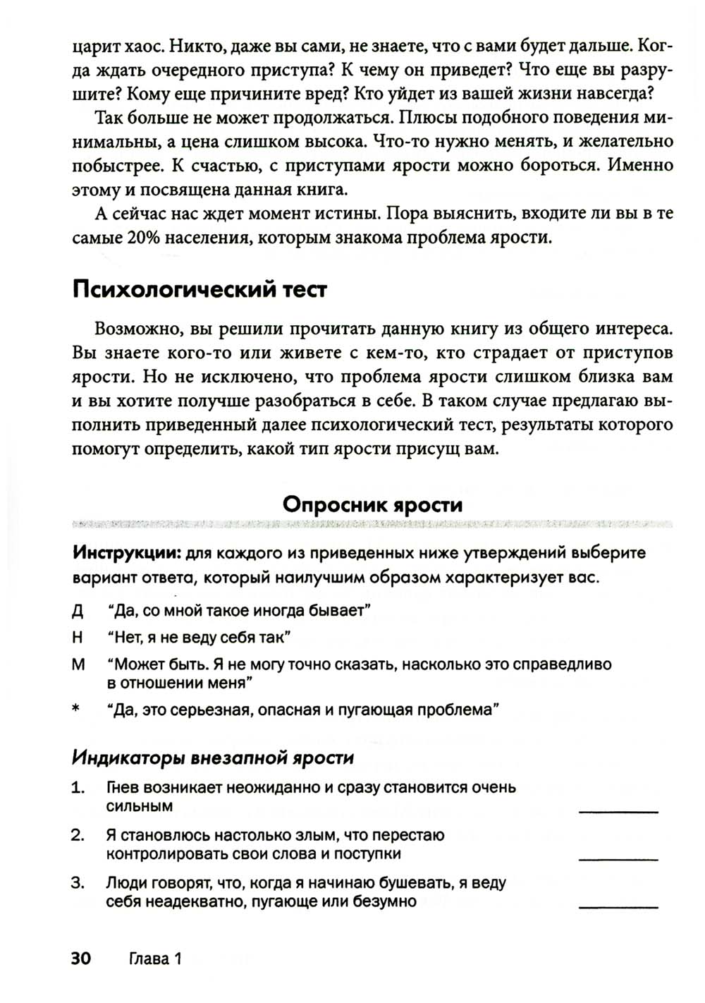 Вам или кому-то из ваших близких приходилось сталкиваться со вспышками неконтролируемого гнева? Приступы ярости настолько сильны, что приводят к разрыву отношений, потере работы, порче имущества или еще более тяжелым последствиям? Прежде всего, знайте: вы не одиноки. Согласно имеющимся оценкам, около 7% людей страдают от прерывистого взрывного расстройства (ПВР), которое характеризуется периодически возникающими аффективными состояниями. При этом у миллионов других людей случаются менее частые, но не менее разрушительные вспышки агрессии. Важно помнить: помощь есть всегда. В данной книге известный эксперт по проблемам гнева Рональд Поттер-Эфрон детально объясняет, как побороть приступы ярости, составив пошаговый план личностных и поведенческих изменений. Автор выделяет четыре типа ярости: • ярость как механизм выживания - провоцируется чувством опасности или угрозы; • бессильная ярость - вызывается чувством беспомощности; • ярость как реакция стыда - возникает, когда человек ощущает неуважительное отношение к себе; • ярость как реакция расставания - может быть спровоцирована страхом потери близкого человека. В книге дается краткое объяснение того, как функционирует мозг в моменты эмоциональных срывов, но основная задача автора - помочь читателю положить конец мучительным эпизодам неконтролируемой агрессии, ведь только вы несете ответственность за свое поведение. В опасной ситуации нет времени на поиск причин и объяснений, поэтому автор предлагает понятные пошаговые методики управления гневом, которые способны дать реальный результат.