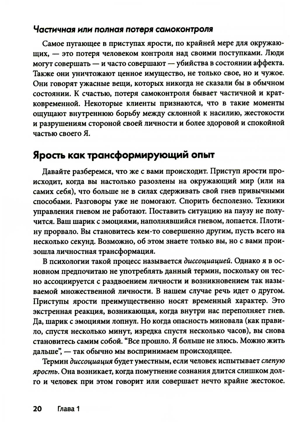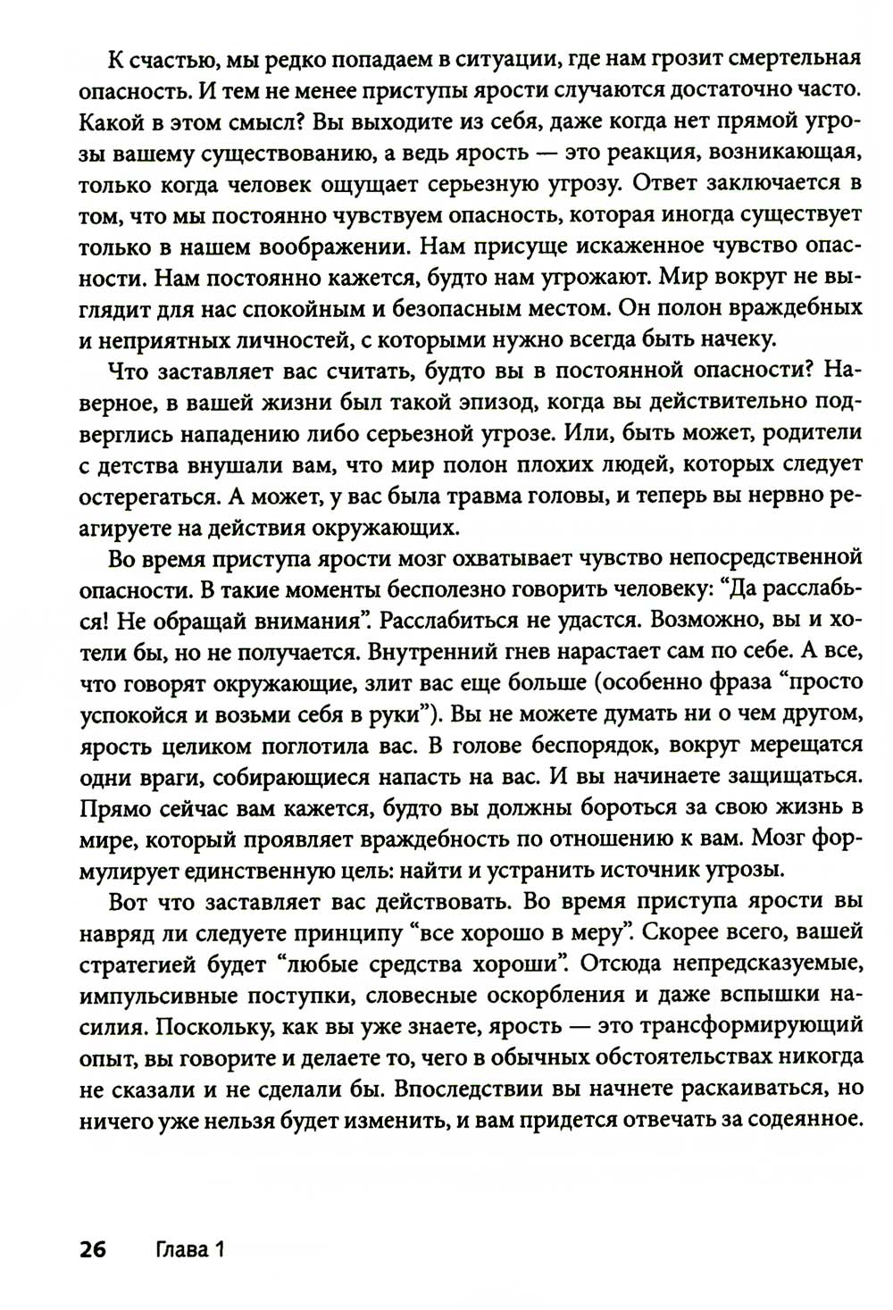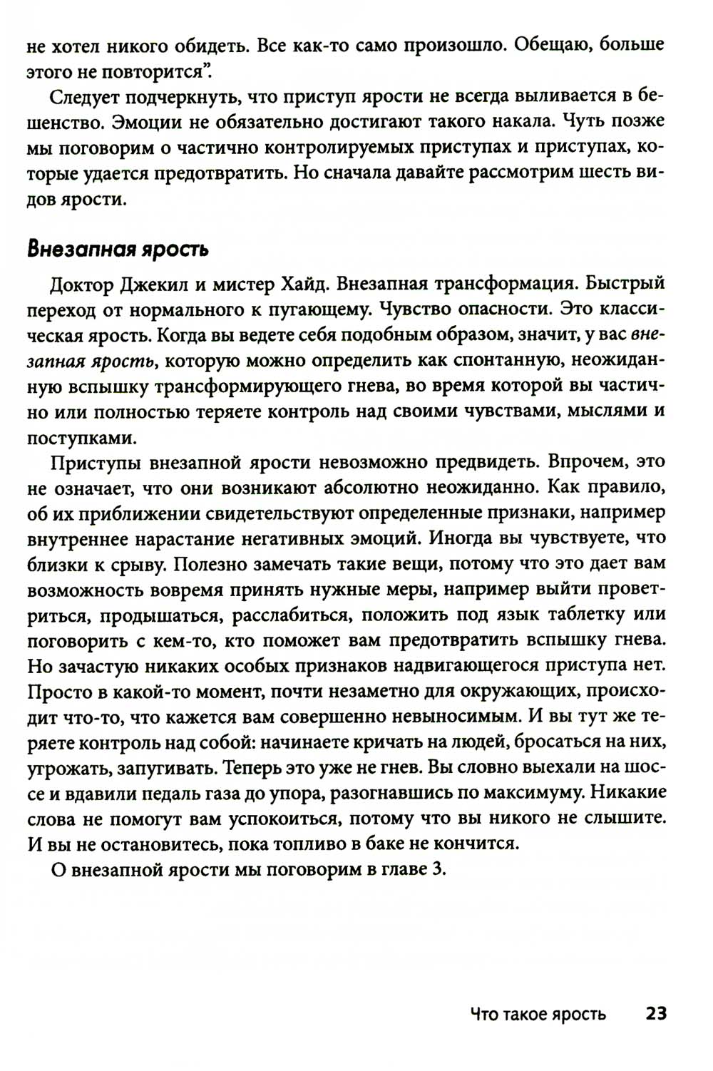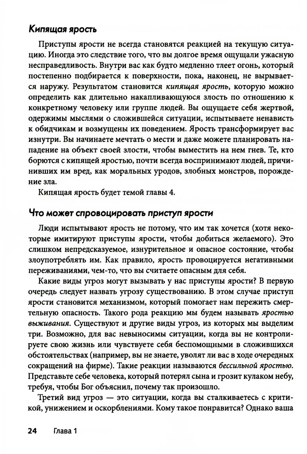 Вам или кому-то из ваших близких приходилось сталкиваться со вспышками неконтролируемого гнева? Приступы ярости настолько сильны, что приводят к разрыву отношений, потере работы, порче имущества или еще более тяжелым последствиям? Прежде всего, знайте: вы не одиноки. Согласно имеющимся оценкам, около 7% людей страдают от прерывистого взрывного расстройства (ПВР), которое характеризуется периодически возникающими аффективными состояниями. При этом у миллионов других людей случаются менее частые, но не менее разрушительные вспышки агрессии. Важно помнить: помощь есть всегда. В данной книге известный эксперт по проблемам гнева Рональд Поттер-Эфрон детально объясняет, как побороть приступы ярости, составив пошаговый план личностных и поведенческих изменений. Автор выделяет четыре типа ярости: • ярость как механизм выживания - провоцируется чувством опасности или угрозы; • бессильная ярость - вызывается чувством беспомощности; • ярость как реакция стыда - возникает, когда человек ощущает неуважительное отношение к себе; • ярость как реакция расставания - может быть спровоцирована страхом потери близкого человека. В книге дается краткое объяснение того, как функционирует мозг в моменты эмоциональных срывов, но основная задача автора - помочь читателю положить конец мучительным эпизодам неконтролируемой агрессии, ведь только вы несете ответственность за свое поведение. В опасной ситуации нет времени на поиск причин и объяснений, поэтому автор предлагает понятные пошаговые методики управления гневом, которые способны дать реальный результат.