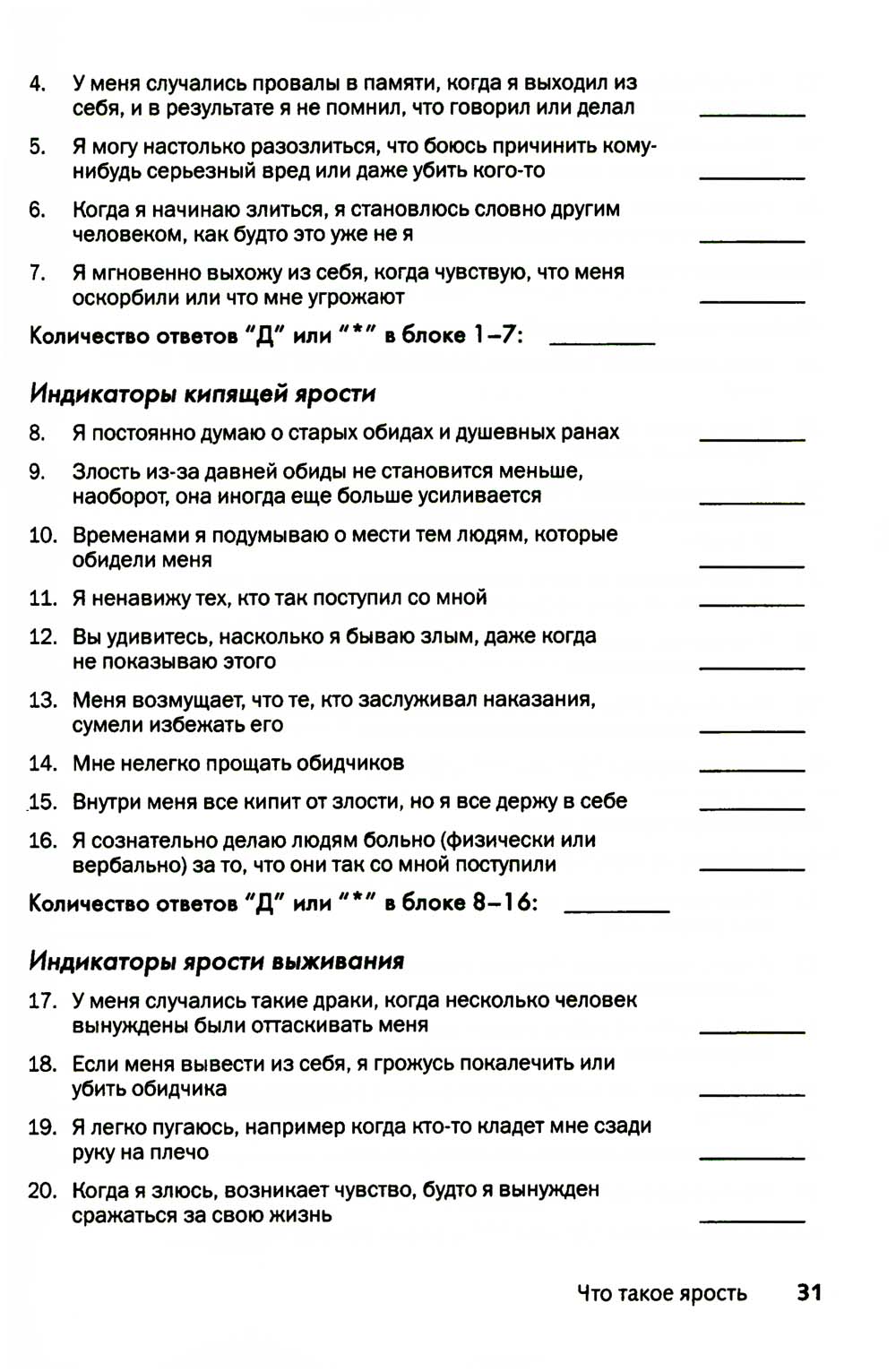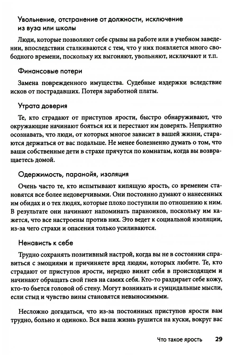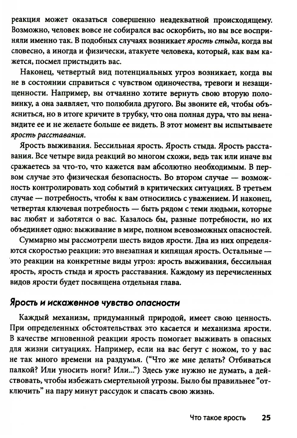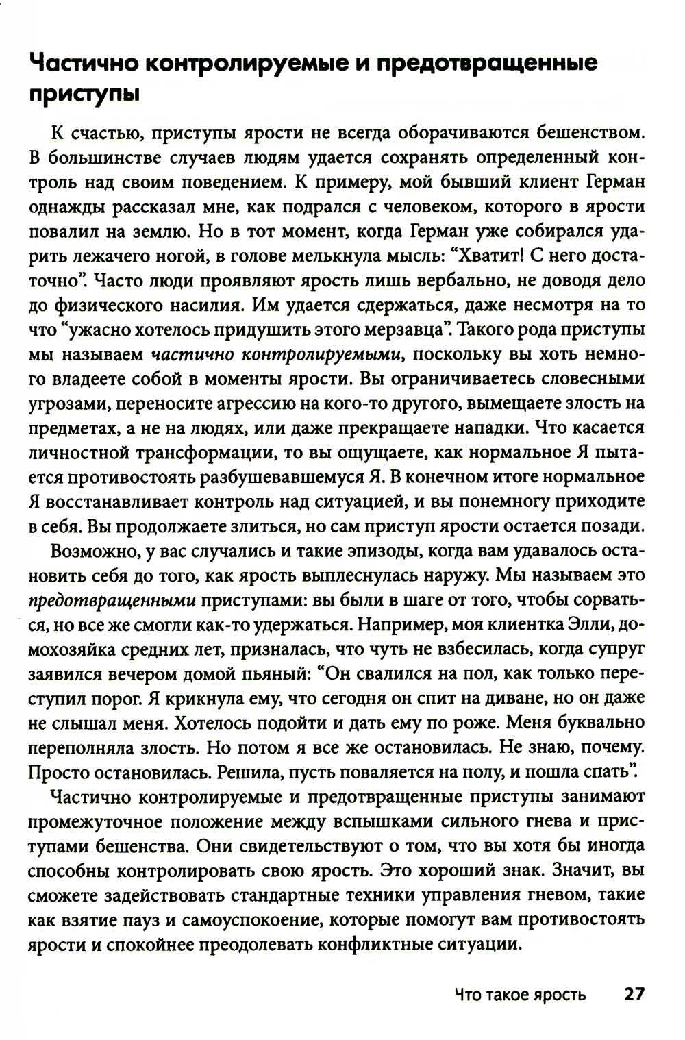 Вам или кому-то из ваших близких приходилось сталкиваться со вспышками неконтролируемого гнева? Приступы ярости настолько сильны, что приводят к разрыву отношений, потере работы, порче имущества или еще более тяжелым последствиям? Прежде всего, знайте: вы не одиноки. Согласно имеющимся оценкам, около 7% людей страдают от прерывистого взрывного расстройства (ПВР), которое характеризуется периодически возникающими аффективными состояниями. При этом у миллионов других людей случаются менее частые, но не менее разрушительные вспышки агрессии. Важно помнить: помощь есть всегда. В данной книге известный эксперт по проблемам гнева Рональд Поттер-Эфрон детально объясняет, как побороть приступы ярости, составив пошаговый план личностных и поведенческих изменений. Автор выделяет четыре типа ярости: • ярость как механизм выживания - провоцируется чувством опасности или угрозы; • бессильная ярость - вызывается чувством беспомощности; • ярость как реакция стыда - возникает, когда человек ощущает неуважительное отношение к себе; • ярость как реакция расставания - может быть спровоцирована страхом потери близкого человека. В книге дается краткое объяснение того, как функционирует мозг в моменты эмоциональных срывов, но основная задача автора - помочь читателю положить конец мучительным эпизодам неконтролируемой агрессии, ведь только вы несете ответственность за свое поведение. В опасной ситуации нет времени на поиск причин и объяснений, поэтому автор предлагает понятные пошаговые методики управления гневом, которые способны дать реальный результат.