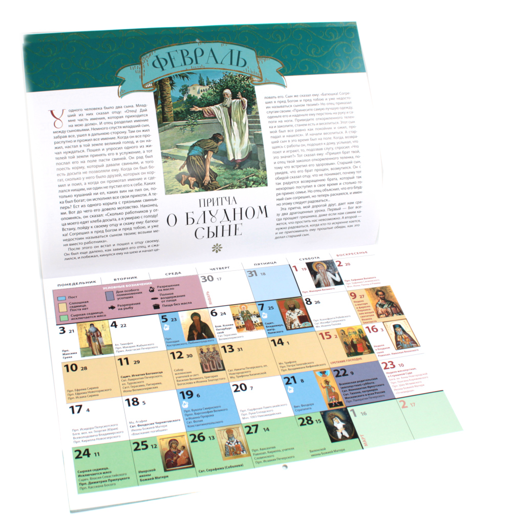 Календарь детский православный настенный перекидной на 2025 год. С развернутыми пересказами притч, которые рассказывал Христос. С указанием праздников, постов и трапез. Допущено к распространению Издательским советом Русской Православной Церкви.| Издательство | Лествица |