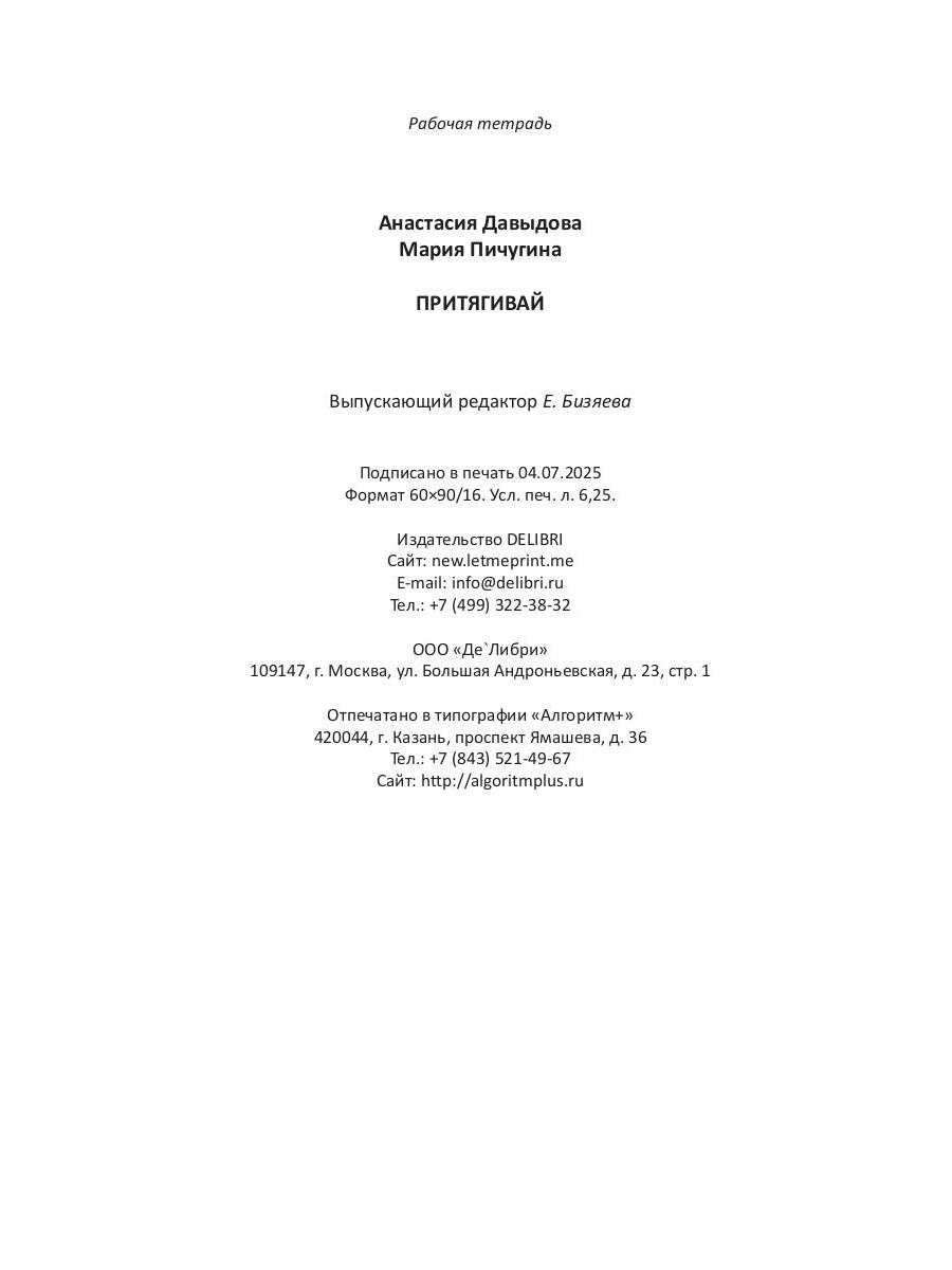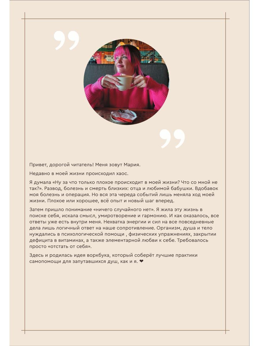 Хватит теории! Этот воркбук - практические задания, которые сопроводят тебя при встрече с прошлыми обидами и страхами, укрепят настоящие намерения и пробудят интерес к будущему планированию. 18 результативных практик самопроработки, календарь-планировщик для новой тебя, внутренняя поддержка в каждом слове. Этот воркбук станет настольным помощником, заполняя который, ты почувствуешь вдохновение и начнешь притягивать неожиданные события.| Издательство | Рипол Классик |