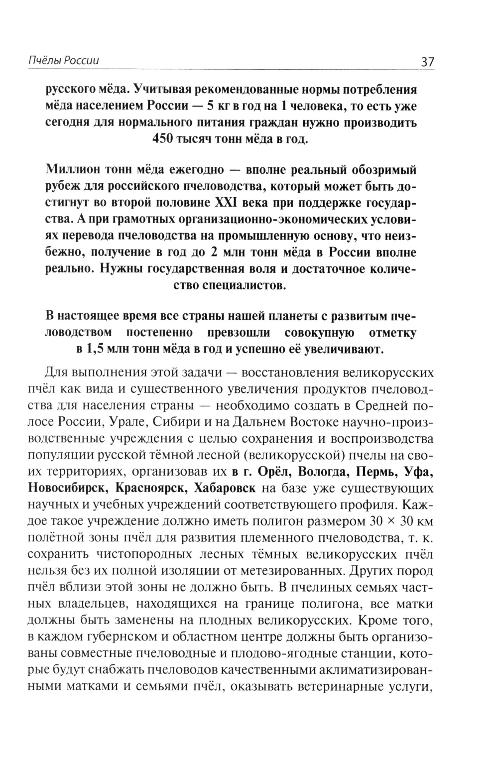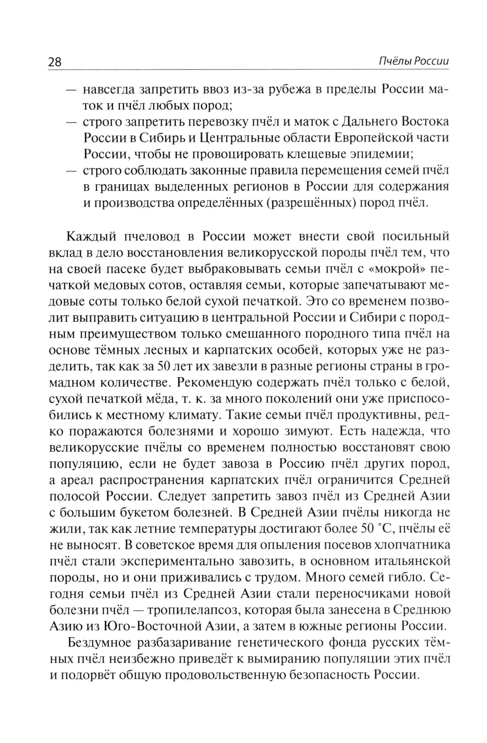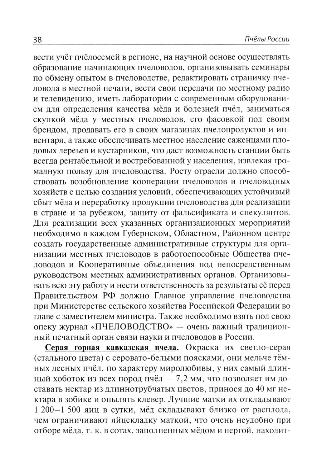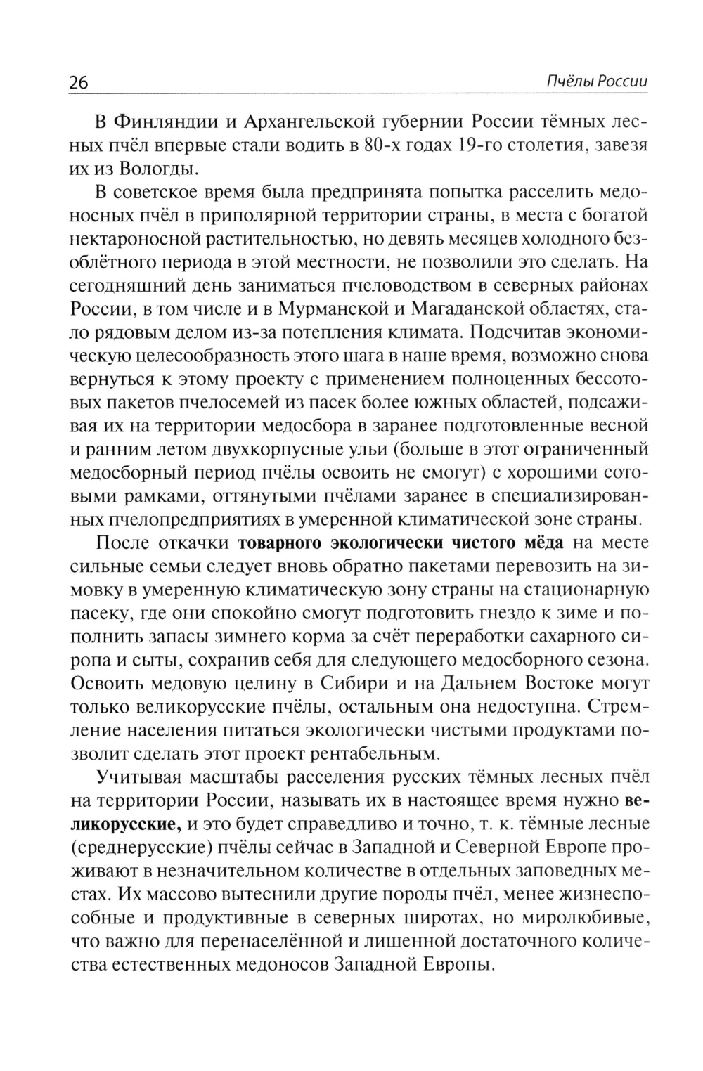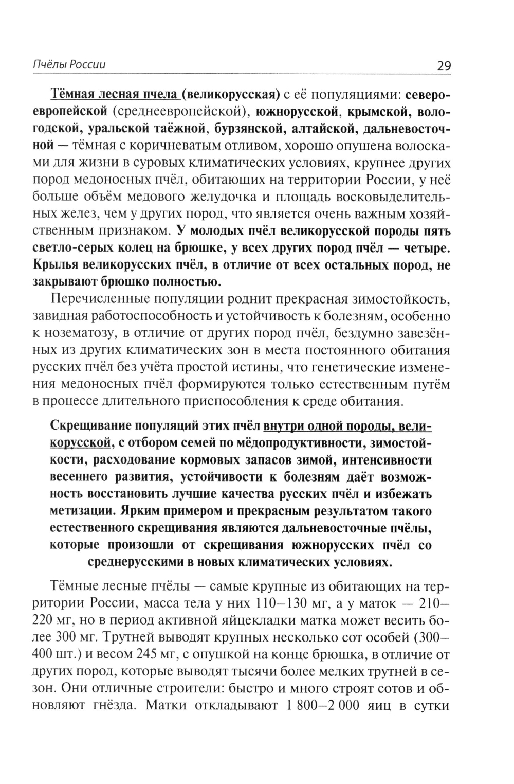 В книге даны необходимые пчеловоду сведения о пчёлах, нектароносных и пыльценосных растениях, их фенологии, типах ульев, о качестве медов и их лечебных свойствах, порядке и правилах обращения с пчёлами на приусадебной пасеке в течение круглого года, а также основные практические приёмы ухода за пчёлами, доступные любому желающему ухаживать за ними, получать от этого моральное и материальное удовлетворение в виде мёда и других продуктов, производимых пчёлами, с целью использования их в семейном пищевом рационе каждодневного здорового питания, а также для лечения, в случае необходимости. Учитывая громадный природно-географический потенциал пчеловодства России, ежегодное увеличение пчелиных семей и пчеловодов позволит в ближайшие годы довести сбор мёда в стране до такого уровня, что создаст условия постоянно, в обязательном порядке, включать мёд в рацион питания в дошкольных детских учреждениях, школах, воинских частях армии и флота России, а также лечебных учреждениях, как это уже сделано в ряде стран Азии. Любовь к окружающей природе и обитающим в ней животным нужно воспитывать в человеке с детства, уделяя достойное место пчёлам и пчеловодству в школьных учебниках, а в каждой сельской школе желательно иметь пасеку и кружок юных пчеловодов, чтобы молодые люди на практике осознавали единство человека и окружающей природы. Для многих из них это станет основой для выбора будущей профессии. Проверенные долголетней практикой методы ухода за пчёлами многих пчеловодов России должны стать достоянием всех желающих заняться пчеловодством. В издании внесены дополнения в соответствии с новыми рекомендациями учёных-пчеловодов и опытных пчеловодов-практиков по содержанию пчёл и охраны их здоровья. На базе многолетнего опыта ухода за пчёлами автор предлагает начинающим и пчеловодам со стажем системно подходить к вождению пчёл, определяя для себя перечень и объём необходимых работ на пасеке по времени года, используя, по возможности, рекомендации, изложенные в этих записках.| Издательство | Солон-пресс |