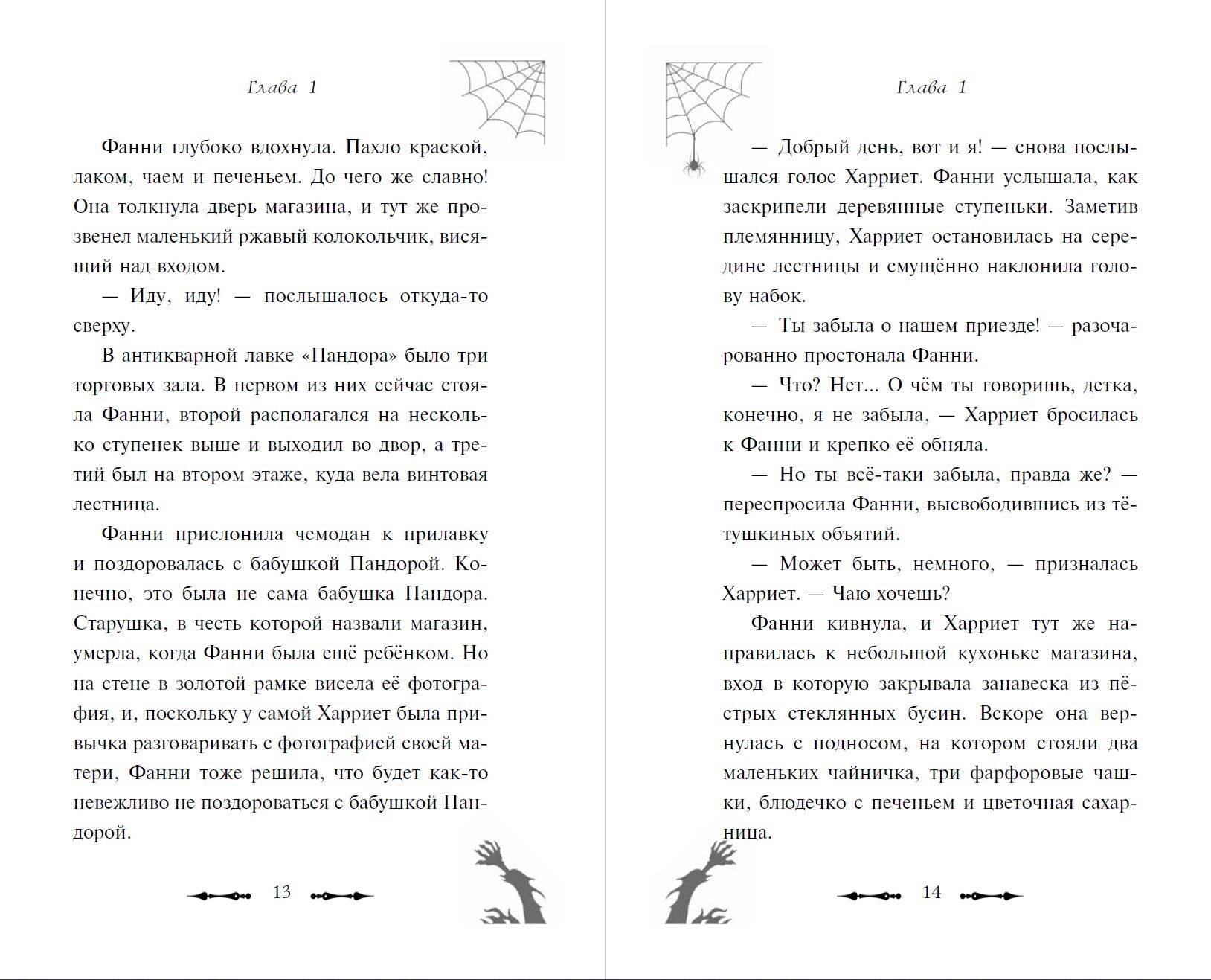Новинка для подростков! Захватывающая история для любителей мистики, призраков и магических тайн. Волшебная история о девочке Фанни, которая проводит летние каникулы в загадочном магазинчике своей тёти Харриет. Однако Фанни уверена, здесь происходит нечто странное: куда-то исчезают вещи, только что протёртая мебель покрывается пылью за считаные секунды, а по ночам слышны грохот и стук. Тётя Харриет ведёт себя так, будто это нормально, но Фанни точно начнёт расследование! Ведь она подозревает, что тётя что-то скрывает. Может быть, это связано с настоящими родителями Фанни? Роскошное оформление: эффектная обложка с леттерингом и фольгой, цветные форзацы. Вас ждут привидения, головоломки, юмор и множество интересных локаций - от Букингемского дворца до жуткого замка Блейк. Для тех, кому нравится книга «Девочка, которая не видела снов». Идеально для читателей 10-14 лет!