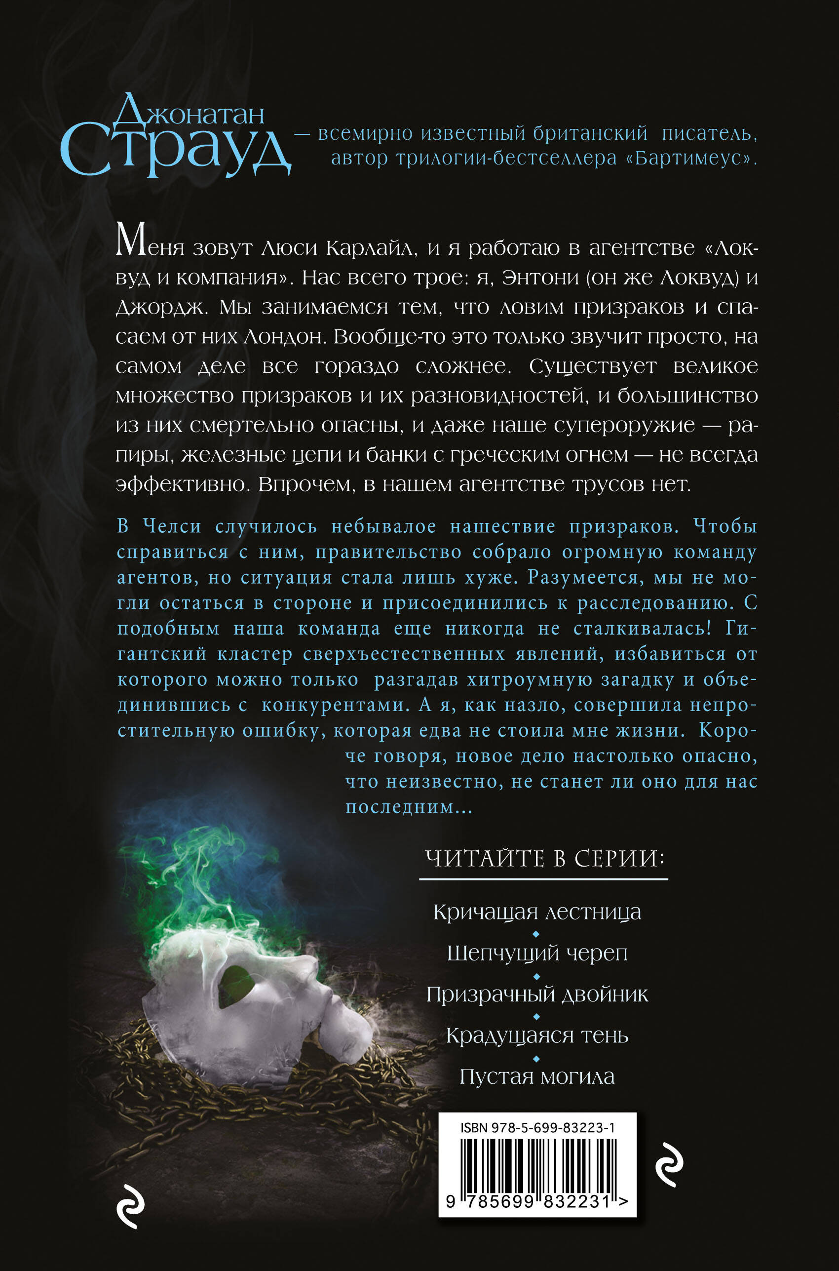 Агентство «Локвуд и Ко», которым управляют трое подростков, занимается борьбой с призраками, наводнившими Лондон. Третья книга серии знаменитого Джонатана Страуда - отличное фэнтези для настоящих ценителей жанра! Эта серия стала такой же популярной и вошла в списки бестселлеров по всему миру, как и «Трилогия Бартимеуса». Настоящий литературный фьюжн - сюжет замешан на детективных расследованиях, напряженном поиске ответов, мистике, и все это в атмосфере почти стимпанкового Лондона.
