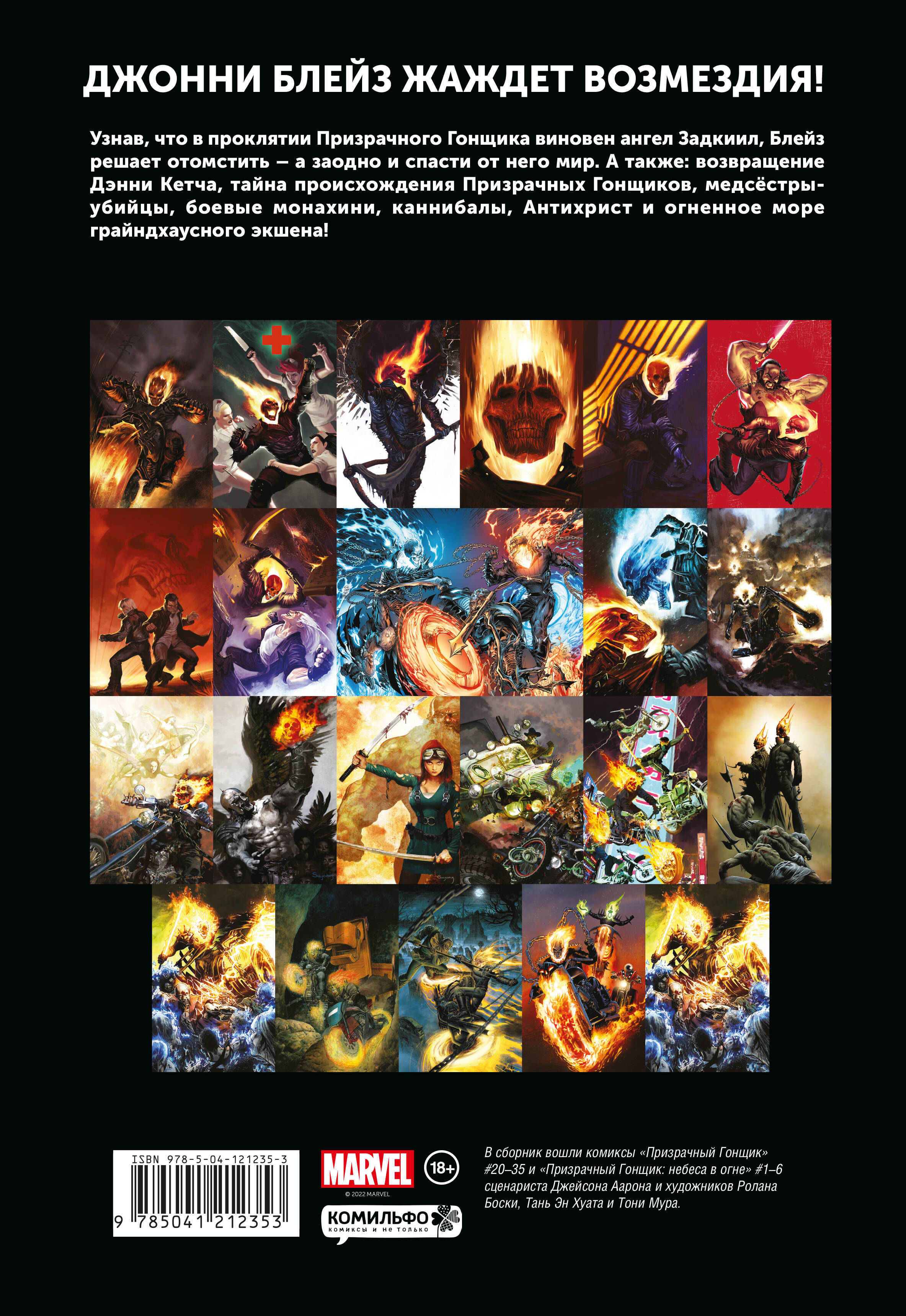 Джонни Блейз жаждет возмездия! Узнав, что в проклятии Призрачного Гонщика виновен ангел Задкиил, Блейз решает отомстить - а заодно и спасти от него мир. А также: возвращение Дэнни Кетча, тайна происхождения Призрачных Гонщиков, медсёстры-убийцы, боевые монахини, каннибалы, антихрист и море грайндхаусного экшена! В сборник вошли комиксы «Призрачный Гонщик» #20-35 и «Призрачный Гонщик: небеса в огне» #1-6 сценариста Джейсона Аарона и художников Ролана Боски, Тань Эн Хуата и Тони Мура.| Издательство | ООО "Издательство "Эксмо" |
