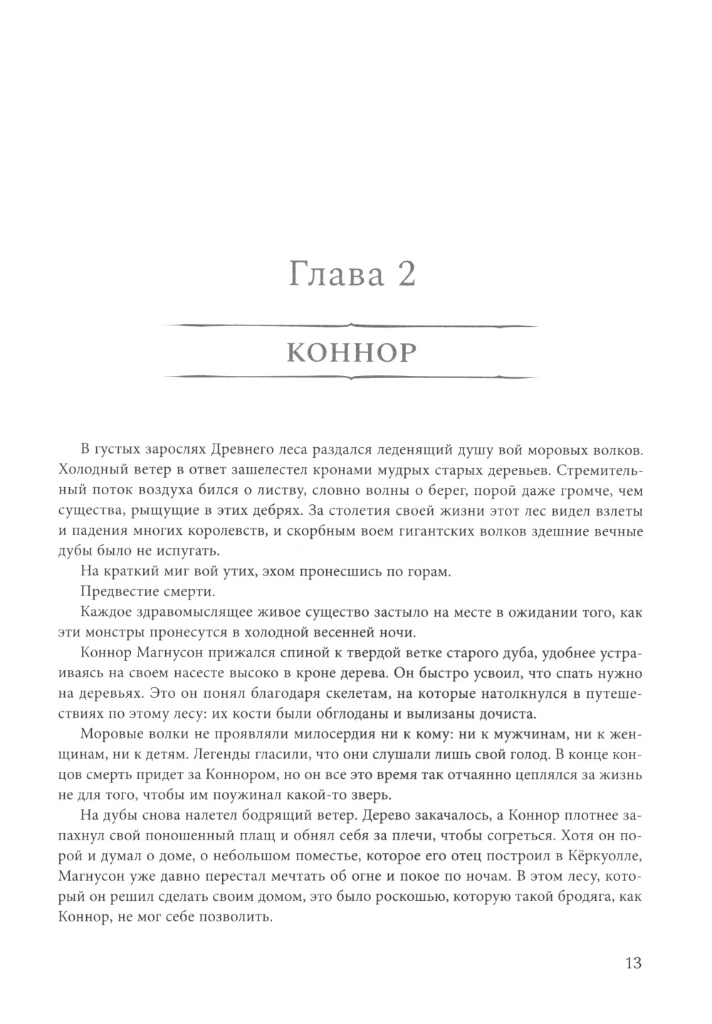 Коннор Магнусон вступает в схватку с самой смертью. Бродяга без гроша в кармане, последние восемь лет Коннор жил один в проклятом лесу, кишащем монстрами, пожирающими людей заживо. Ему, всеми забытому и отвергнутому, больше некуда идти, и каждую ночь он смотрит в глаза смерти, обнажив свой меч, чтобы схлестнуться с ней. Ведь лес уже давным-давно вытравил из него всякий страх. И все же это не до конца ожесточило его сердце. Когда откуда ни возьмись раздался крик загадочной девочки, Коннор вступил в жестокую схватку, которая чуть не стоила ему жизни. Храбрость не осталась без награды, и после битвы он обнаружил, что оказался связан с самой печально известной сущностью, которую когда-либо знал мир, - с Призрачным королем. Нежить даровала ему нечеловеческие способности, но за легендарную магию всегда приходится платить. Даже несмотря на помощь таких же отбросов, как он сам, Коннор объявлен вне закона. Короли и лорды знают, куда подевался призрак, и они готовы перерезать бродяге глотку, чтобы забрать его. Они считают такого плебея, как Коннор, недостойным. Он лишь ошибка, которую нужно исправить, не более. Но Коннор не так-то прост, и он готов утащить преследователей за собой в могилу, если это понадобится, чтобы защитить то, что принадлежит ему по праву.| Издательство | Феникс |