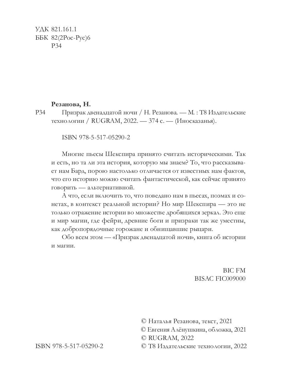 Многие пьесы Шекспира принято считать историческими. Так и есть, но та ли эта история, которую мы знаем? То, что рассказывает нам Бард, порою настолько отличается от известных нам фактов, что его историю можно считать фантастической, как сейчас принято говорить - альтернативной. А что, если включить то, что поведано нам в пьесах, поэмах и сонетах, в контекст реальной истории? Но мир Шекспира - это не только отражение истории во множестве дробящихся зеркал. Это еще и мир магии, где фейри, древние боги и призраки так же уместны, как добропорядочные горожане и обнищавшие рыцари. Обо всем этом - «Призрак двенадцатой ночи», книга об истории и магии.