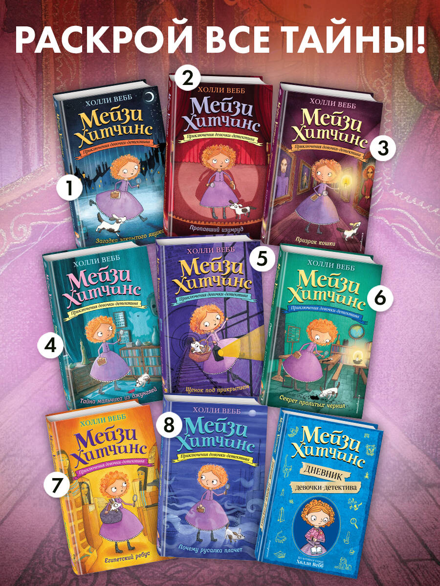 Мейзи Хитчинс мечтает стать детективом, а пока расследует загадки, которые попадаются на пути. В этой книге она ловит… призрака! Только вот щенок Эдди тоже охотится на него, а считается, что животные призраков не видят… Серия книг Холли Вебб про девочку-детектива Мейзи Хитчинс уже несколько лет входит в топы продаж. Это образцовый детектив для детей - тайны, которые расследует девочка, под силу разгадать ребёнку! Здесь полно приключений, трогательных и смешных моментов и удивительных фактов из истории викторианского Лондона! Холли Вебб - писательница, популярная во всём мире, но особенно её полюбили в России. Её истории всегда мудрые, поучительные без назидания и очень жизнеутверждающие (а ещё в них всё всегда заканчивается замечательно!).