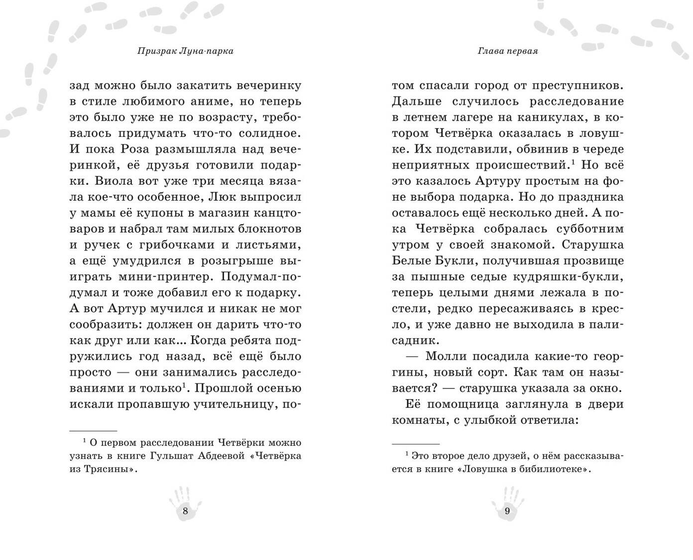 Продолжение популярной серии про четверых друзей! Стоило всего один раз четырнадцатилетним Артуру, Розе, Виоле и Люку поступить как настоящие детективы и найти преступников, угрожавших их родному городку, как спокойная жизнь друзей закончилась. Их словно преследуют загадки, требующие разрешения. На этот раз друзья обнаружили, что по столичному Луна-парку разгуливает… призрак. Он появляется только после закрытия и носится по всему парку, а значит, это не беглец из аттракциона «Комната страха». Кое-кто из ребят думает, что это настоящий призрак, но большинство уверено, что привидений не существует. Кто из них прав? Расследование покажет! Гульшат Абдеева - автор книг для детей и подростков, лауреат множества литературных премий. Её детективы увлекательны и полны неожиданных сюжетных поворотов в лучших традициях жанра. Для любителей книг Энид Блайтон, поклонников «Золота скифов» Дмитрия Емца и тех, кто вырос на серии про Мейзи Хитчинс Холли Вебб. Книга подходит для читателей от 10 лет.| Издательство | ООО "Издательство "Эксмо" |
