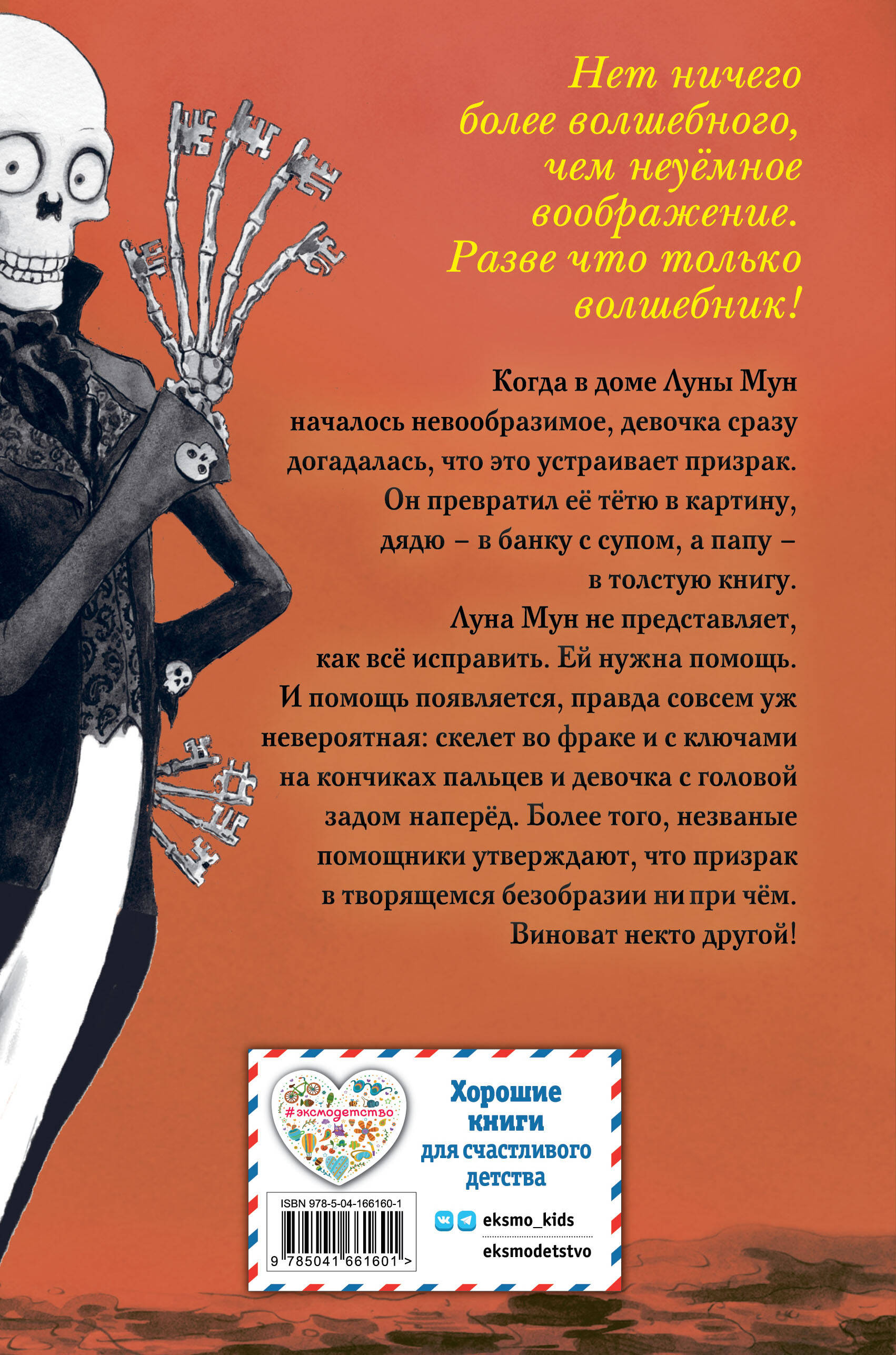 Для тех, кто любит загадки со многими неизвестными! (И приключения с хорошим концом.) Однажды тётя превратилась в картину, дядя - в банку с супом, а папа - в толстую книгу. В общем, весело и жутко стало в доме, где живёт Луна Мун. Девочка уверена, что это проделки призрака, но вот внезапно явившиеся гости - совершенно незваные, прошу заметить - утверждают, что призраки тут ни при чём. Кто же всё это устроил? Гай Басс - известный британский писатель и иллюстратор. Он пишет увлекательнейшие книги, потому что хорошо помнит, каково это - быть ребёнком. А среди героев у него и девочки, и мальчики, и скелет с ключами вместо пальцев, и даже развоображаемый друг… В книге шикарные иллюстрации и крупный шрифт, который удобно читать.| Издательство | Эксмо |