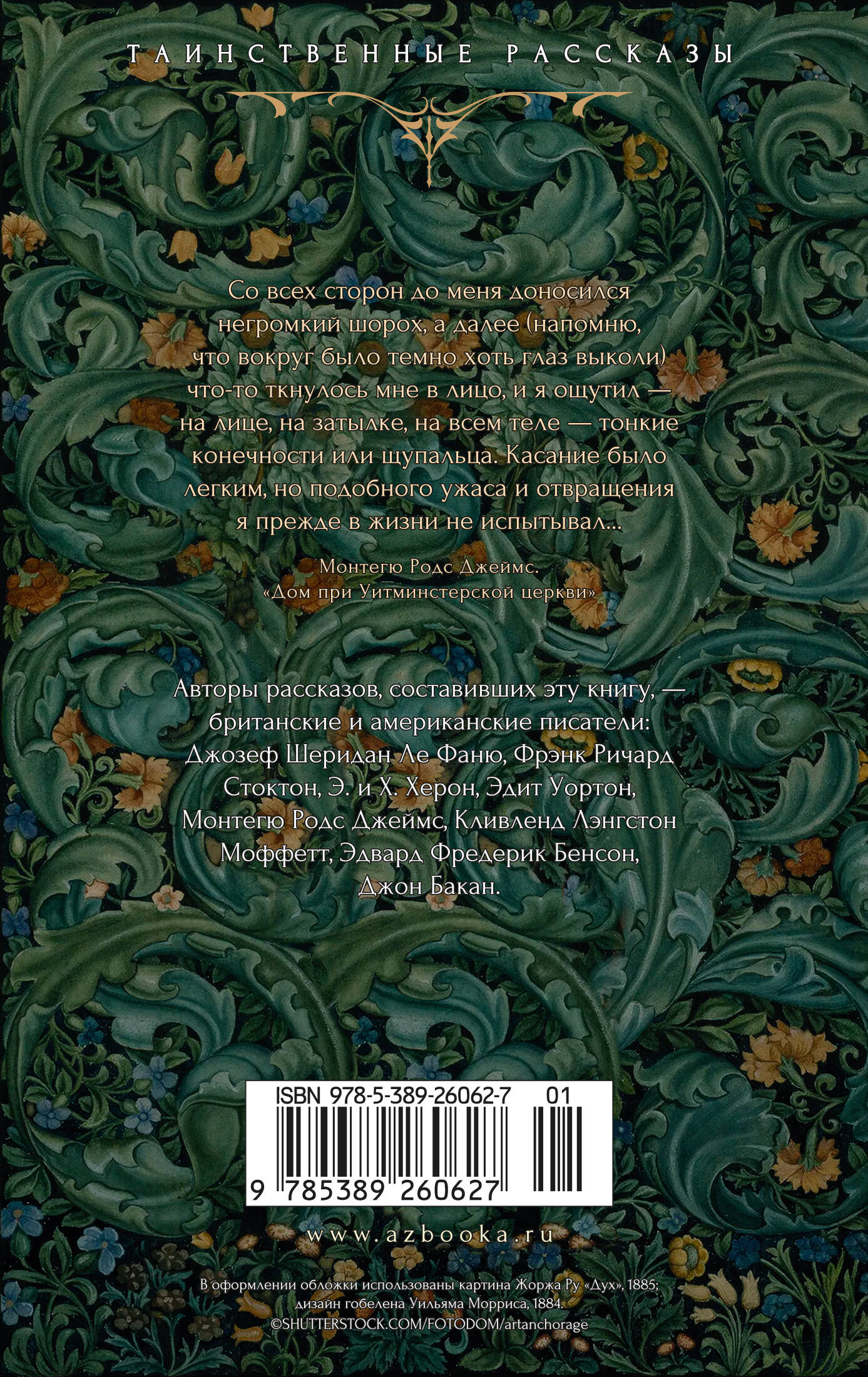 Серия "Таинственные рассказы" - это сборники произведений малой прозы, написанных в XIX - первой половине ХХ века. Истории, вводящие читателей в мир, где обыденное соседствует со сверхъестественным, где судьбы героев вершат вселяющие страх потусторонние силы, а сама граница между жизнью и смертью оказывается зыбкой, издавна пользовались популярностью. Овеянные мрачным колоритом, драматичные сюжеты о родовых проклятиях, загадках старинных портретов, сделках с дьяволом, неприкаянных душах, призраках и т. д. стали особенно популярны в эпоху романтизма. Но и позднее интерес читателей к ним не иссяк: даже в эпоху философского скептицизма, расцвета науки и триумфа техники готическая литература остается востребованной, а таинственное, необъяснимое, чудесное по-прежнему и привлекает, и завораживает. Авторы рассказов, составивших эту книгу, - британские и американские писатели: Джозеф Шеридан Ле Фаню, Фрэнк Ричард Стоктон, Э. и Х. Херон, Эдит Уортон, Монтегю Родс Джеймс, Кливленд Лэнгстон Моффетт, Эдвард Фредерик Бенсон, Джон Бакан.