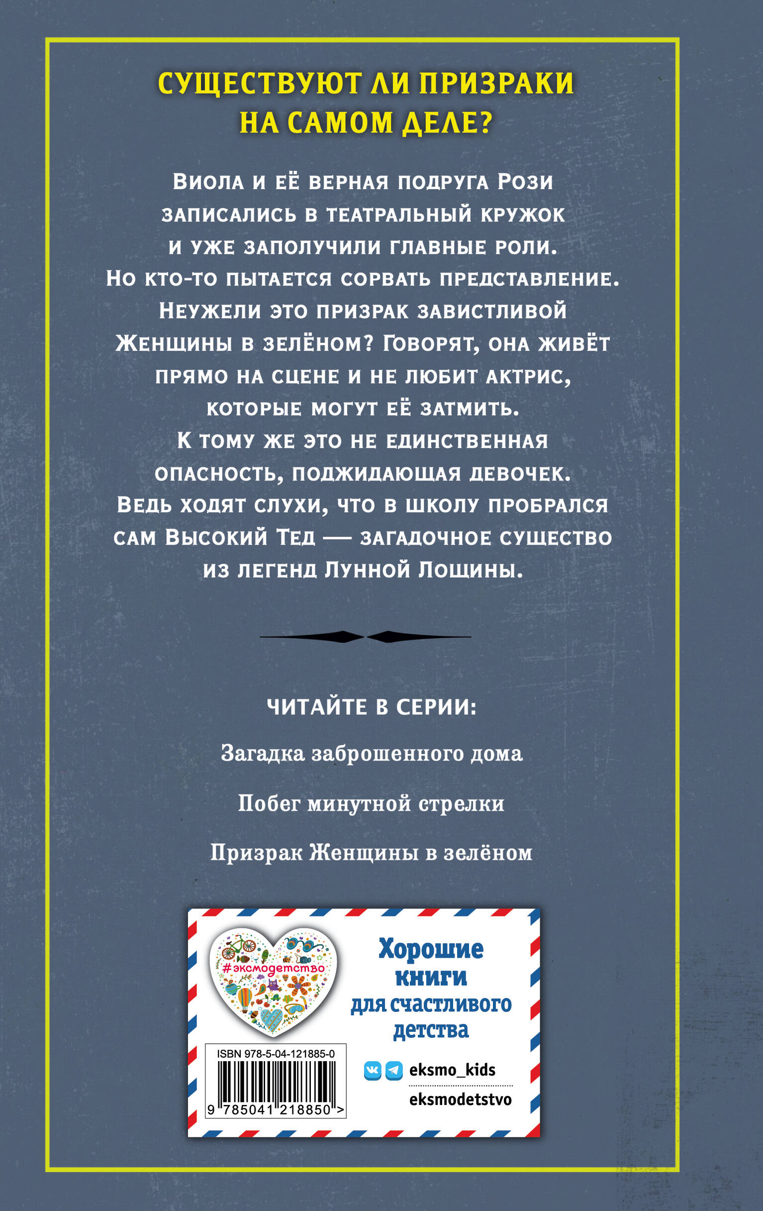 Виола Харт и её друзья раскроют все секреты городка! Виола и её верная подруга Рози записались в театральный кружок и уже заполучили главные роли. Но кто-то пытается сорвать представление. Говорят, это призрак женщины в Зелёном, живущий прямо на сцене. А вдруг это не единственная опасность, поджидающая девочек в школе? Внутри - увлекательные истории, а разгадки можно искать вместе с героями! Атмосферные обложки и красивые форзацы - книгу приятно взять в руки! Автор серии - Дэн Поблоки - известный американский автор книг для детей и подростков, его книги - наши бестселлеры. Аналоги: «Мейзи Хитчинс» и «Детективное агентство Агаты»!| Издательство | ООО "Издательство "Эксмо" |