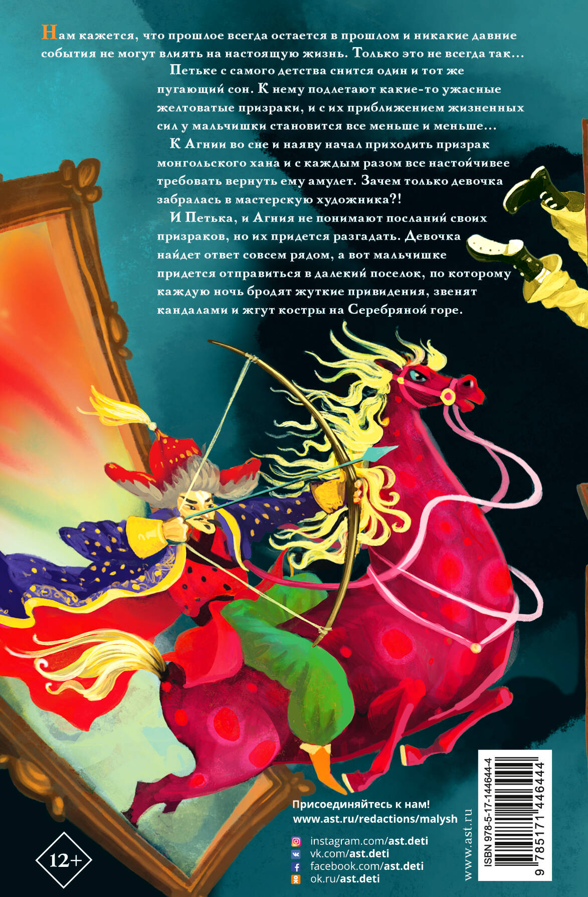 В книгу Аллы Озорниной, известного детского писателя, вошли две жуткие истории: "Призраки из прошлого" и "Тайна древнего амулета". В первой истории главный герой − обычный мальчишка Петька, с лишним весом и прыщами на лице. Каждое дело даётся ему с огромным трудом, ни на что не хватает сил. И вот такого увальня родители отправляют в посёлок в такой глуши, где даже телефон не ловит! В "Благодатном" связи нет, а вот призраков в кандалах и ведьмаков достаточно. Мальчишке предстоит разобраться во всей этой чертовщине и заодно вернуть свои жизненные силы. Во второй истории девочку Агнию сгубило её любопытство. Однажды в ночи она пробралась в мастерскую художника и взглянула на его новую недописанную картину. С тех пор к ней стал приходить призрак монгольского хана с картины и требовать свой амулет. В жизни Агнии и так много непонятного. Давние проблемы в школе, новый странный родственник, а тут ещё хан со своими навязчивыми просьбами! А над городом тем временем сгущаются жуткие тучи, и они как-то связаны с проблемами девочки. Для среднего школьного возраста.| Издательство | ИЗДАТЕЛЬСТВО "АСТ" |