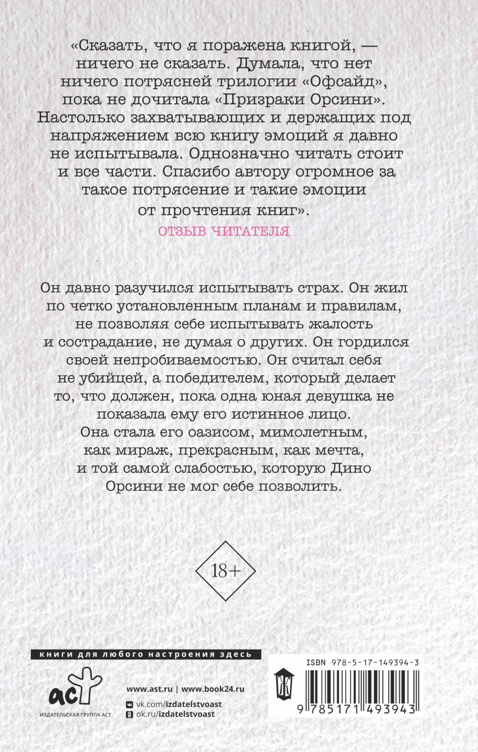Он давно разучился испытывать страх. Он жил по четко установленным планам и правилам, не позволяя себе испытывать жалость и сострадание, не думая о других. Он гордился своей непробиваемостью. Он считал себя не убийцей, а победителем, который делает то, что должен, пока одна юная девушка не показала ему его истинное лицо. Она стала его оазисом, мимолетным, как мираж, прекрасным, как мечта, и той самой слабостью, которую Дино Орсини не мог себе позволить.| Издательство | Издательство "АСТ" |