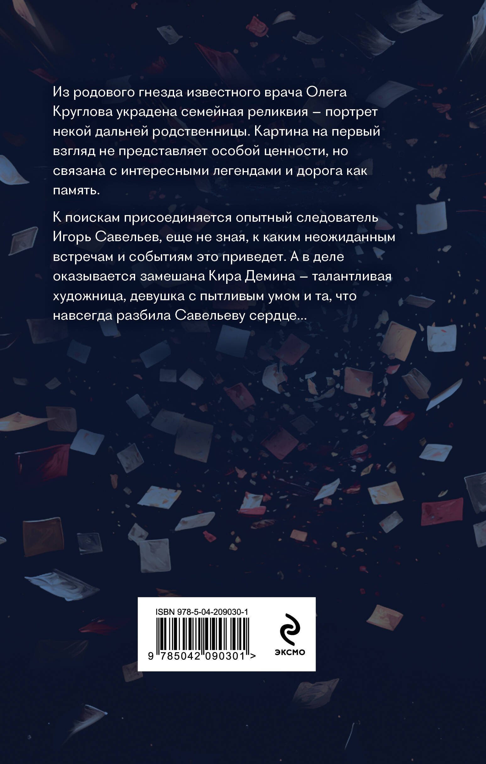 Из родового гнезда известного врача Олега Круглова украдена семейная реликвия - портрет некой дальней родственницы. Картина, на первый взгляд, не представляет особой ценности, но связана с интересными легендами и дорога как память. К поискам присоединяется опытный следователь Игорь Савельев, еще не зная, к каким неожиданным встречам и событиям это приведет. А в деле оказывается замешана Кира Демина - талантливая художница, девушка с пытливым умом и та, что навсегда разбила Савельеву сердце. Тайны прошлого, сильные чувства и невероятные судьбы - Игорю и Кире предстоит распутать сложный клубок, в котором сплелись и их собственные жизни. Продолжение романа «Опасные тени прошлого».| Издательство | ООО "Издательство "Эксмо" |