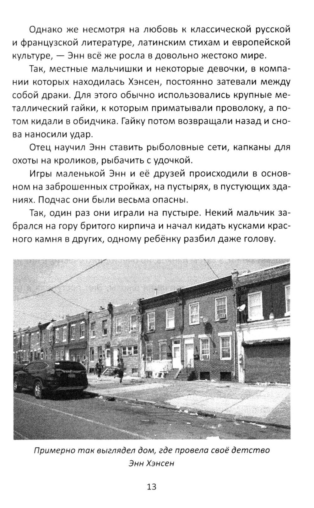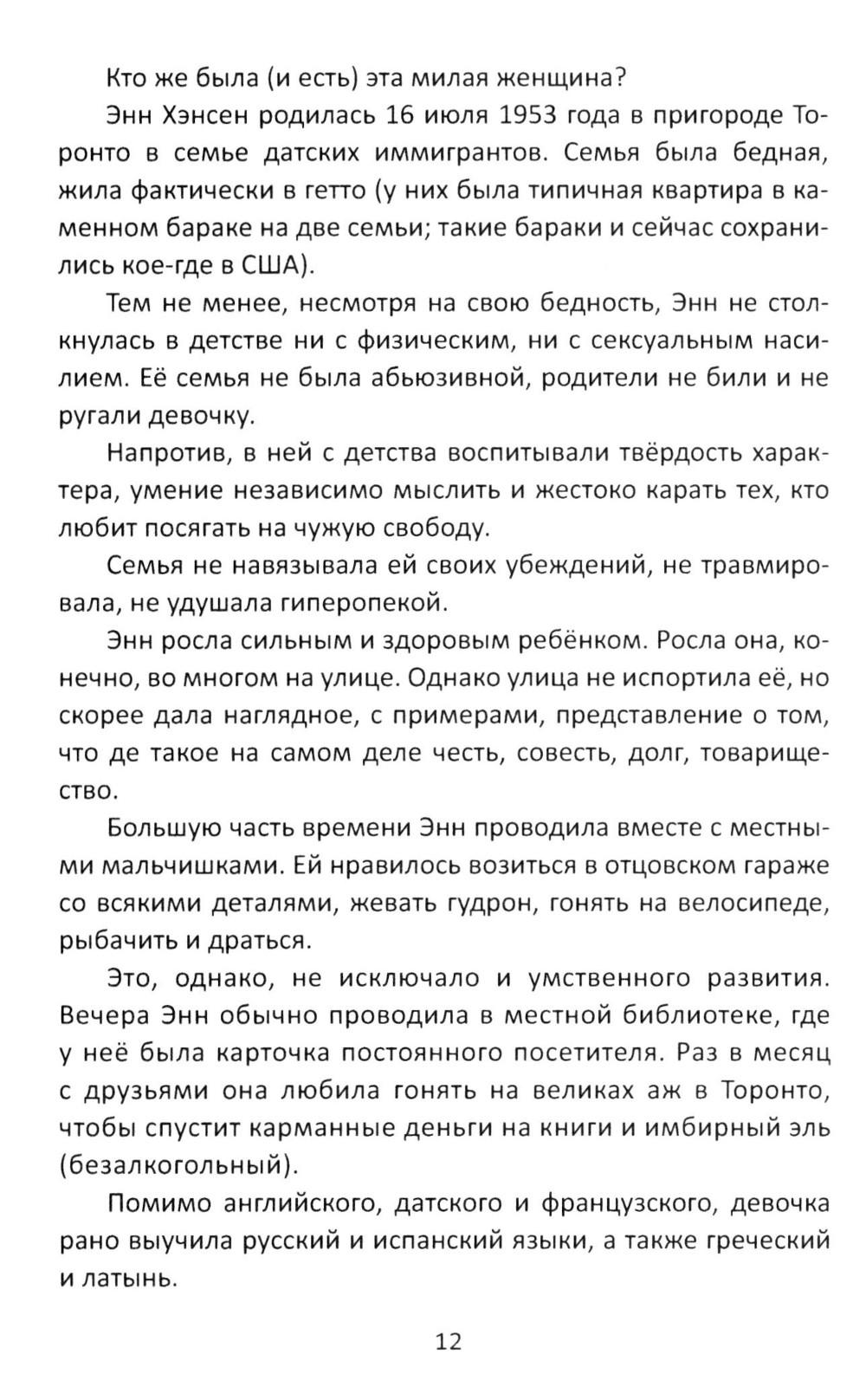 Энн Хэнсен - канадская анархо-коммунистка, икона современного феминизма. Первую бомбу она собрала в восемь лет. В семнадцать поступила в лучший вуз страны, а в двадцать два стала доктором. Она боролась против порнографии, проституции и капитализма, занималась партизанской борьбой и работала на КГБ. Она взорвала завод по производству баллистических ракет, получила пожизненное заключение, но была освобождена и избрана в парламент Канады, стала матерью троих детей. В этой книге она рассказывает про свою уникальную жизнь: советские агенты, молодые анархисты и феминистки, вооруженная борьба, террор и тюрьма, политические интриги и амурные похождения.| Издательство | Родина |