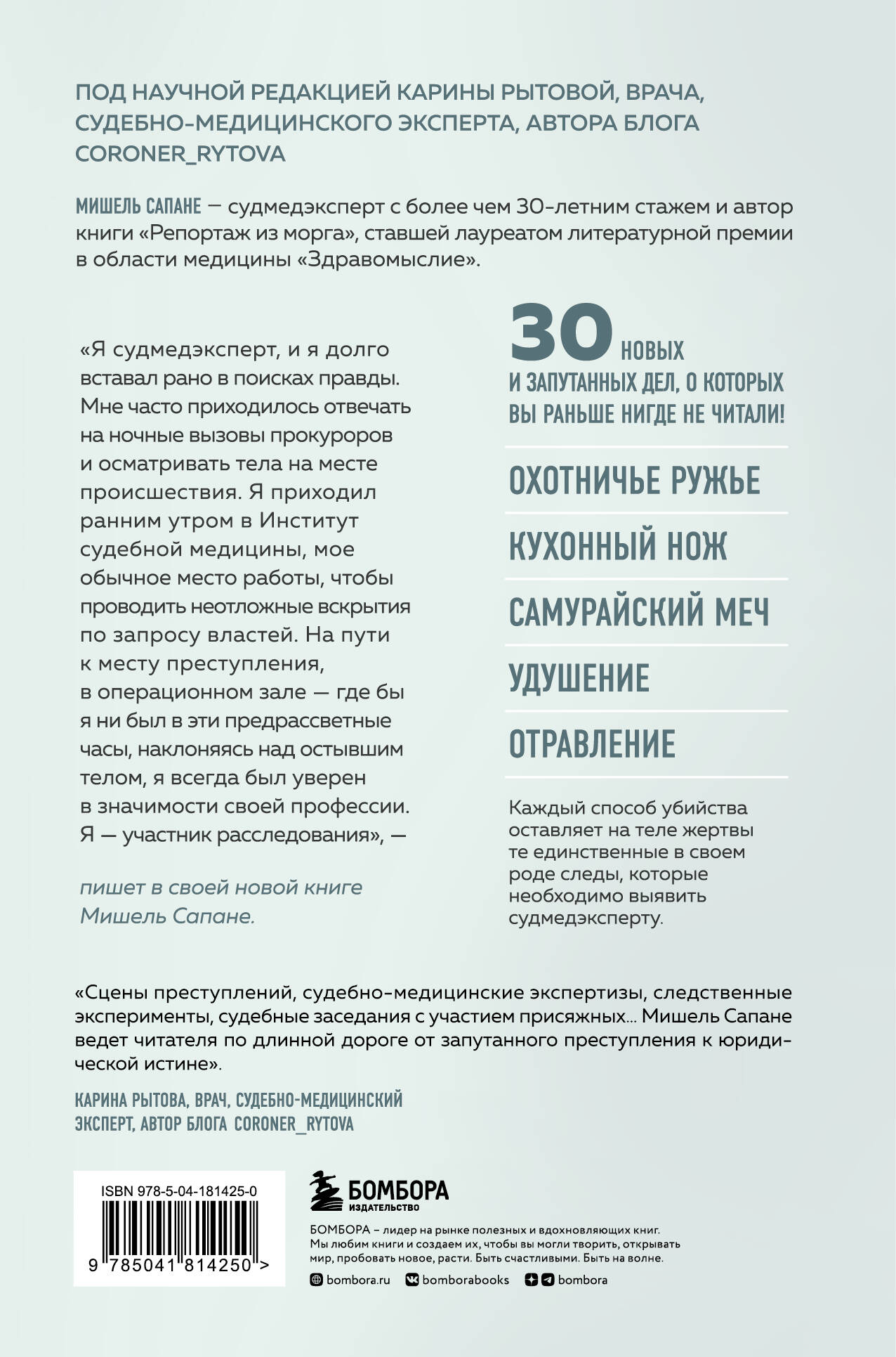 «Каждое исследуемое тело - это как математическая задача, которую необходимо решить», - пишет в своей новой книге Мишель Сапане. 30 новых и запутанных дел, о которых вы раньше нигде не читали! Охотничье ружье, кухонный нож, самурайский меч, удушение, отравление - каждый способ убийства оставляет на теле жертв те единственные в своем роде следы, которые необходимо выявить судмедэксперту. Если вы интересуетесь судебной медициной и хотите узнать больше о ее тайнах и загадках, то эта книга станет для вас настоящим открытием! Мишель Сапане - судмедэксперт с более чем 30-летним стажем и автор книги «Репортаж из морга», ставшей лауреатом литературной премии в области медицины «Здравомыслие». «Сцены преступлений, судебно-медицинские экспертизы, следственные эксперименты, судебные заседания с участием присяжных... Мишель Сапане ведет читателя по длинной дороге от запутанного преступления к юридической истине». - Карина Рытова, врач, судебно-медицинский эксперт, автор блога coroner_rytova Цитаты из книги «Прямой эфир из морга»: «Я называю труп моим пациентом, так как, прежде чем оказаться под моим хирургическим скальпелем и стать объектом изучения, он был человеком и был жив». «Вскрытое туловище можно сравнить с большой овальной чашей, внутри которой находятся органы». «Чтобы иметь возможность спокойно работать над изувеченным телом, я должен отключить в себе любые эмоции и эмпатию независимо от обстоятельств».| Издательство | ООО "Издательство "Эксмо" |