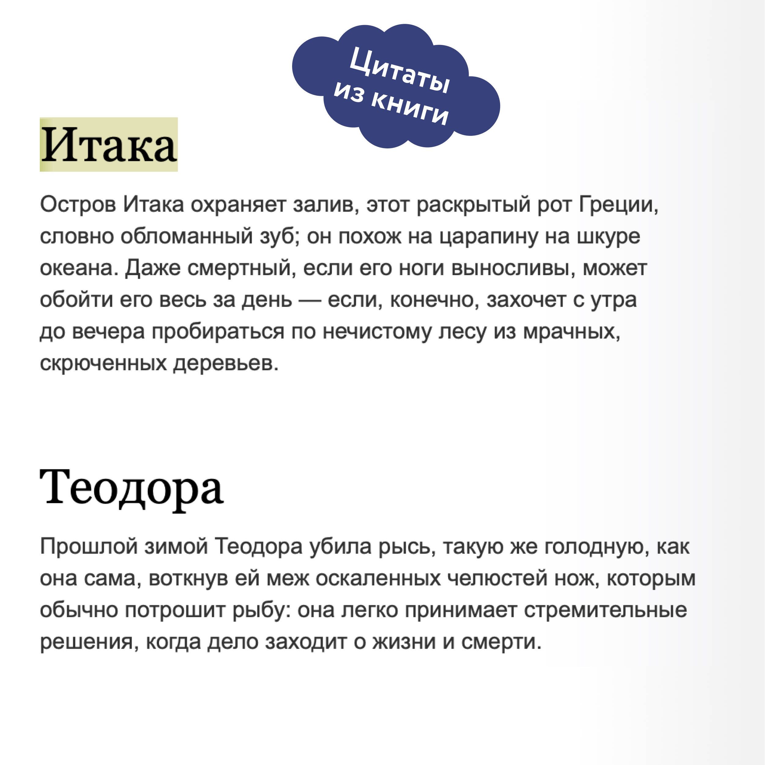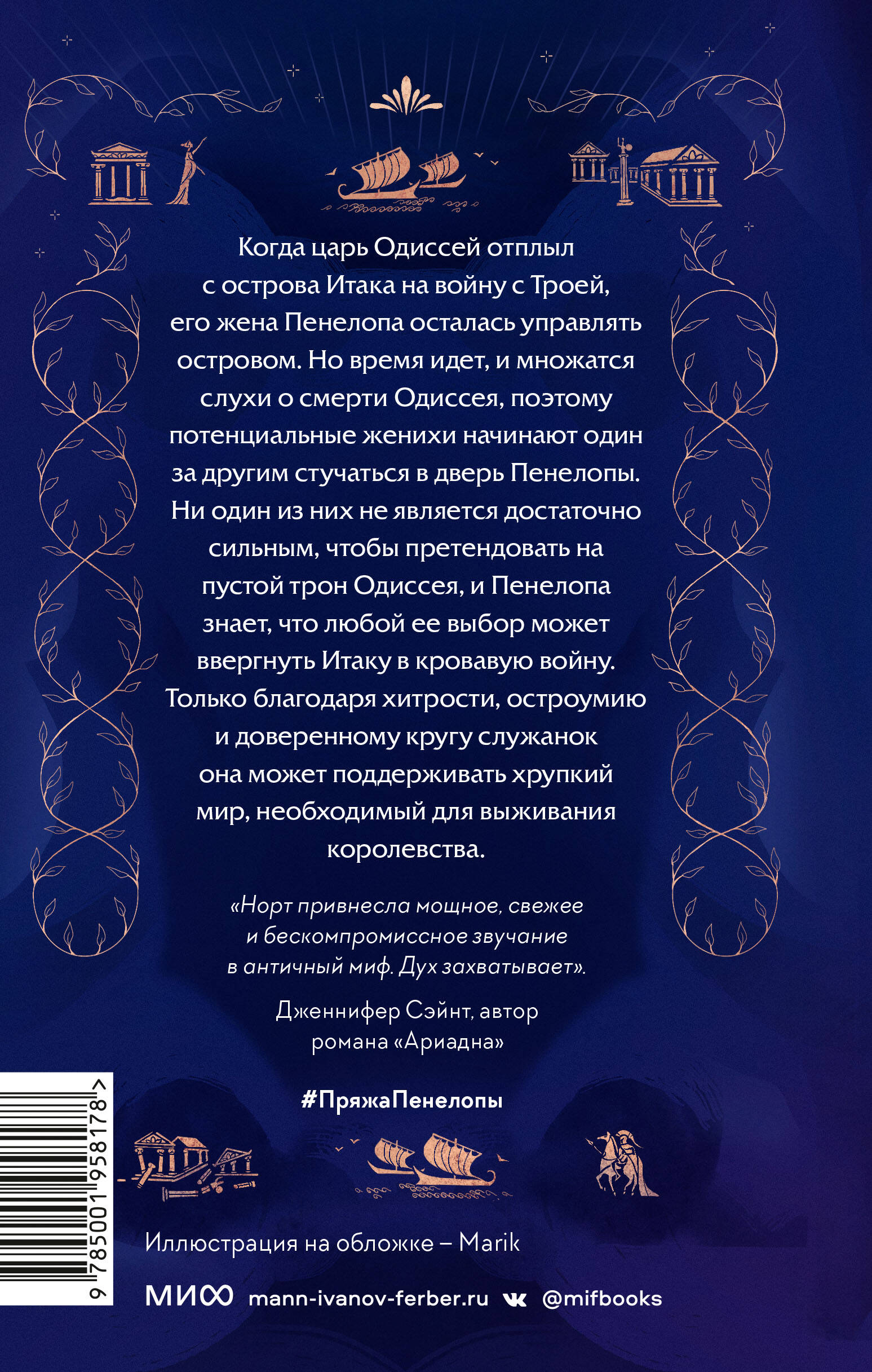 Семнадцать лет назад царь Одиссей отплыл с острова Итака на войну с Троей. Вместе с ним уехали все мужчины, способные держать оружие, да и взор богов Олимпа обратился в ту же сторону. Никто из мужчин не вернулся. Жена Одиссея Пенелопа, женщины Итаки и их богини остались управлять островом. Но время идет, и множатся слухи о смерти Одиссея, поэтому потенциальные женихи начинают один за другим стучаться в дверь Пенелопы. Ни один из них не достаточно силен, чтобы претендовать на пустой трон Одиссея, и Пенелопа знает, что любой ее выбор может ввергнуть Итаку в кровавую гражданскую войну. Только благодаря хитрости, остроумию и доверенному кругу служанок она может поддерживать хрупкий мир, необходимый для выживания королевства. Для кого эта книга: Для тех, кто увлекается греческой мифологией и ретеллингами. Для поклонников романов "Песнь Ахилла" и "Цирцея" Мадлен Миллер, "Безмолвие девушек" Пэт Баркер, "Тысяча кораблей" Натали Хейнс. Для читателей, которые хотят взглянуть на известный миф новыми глазами.| Издательство | МАНН, ИВАНОВ И ФЕРБЕР ООО |