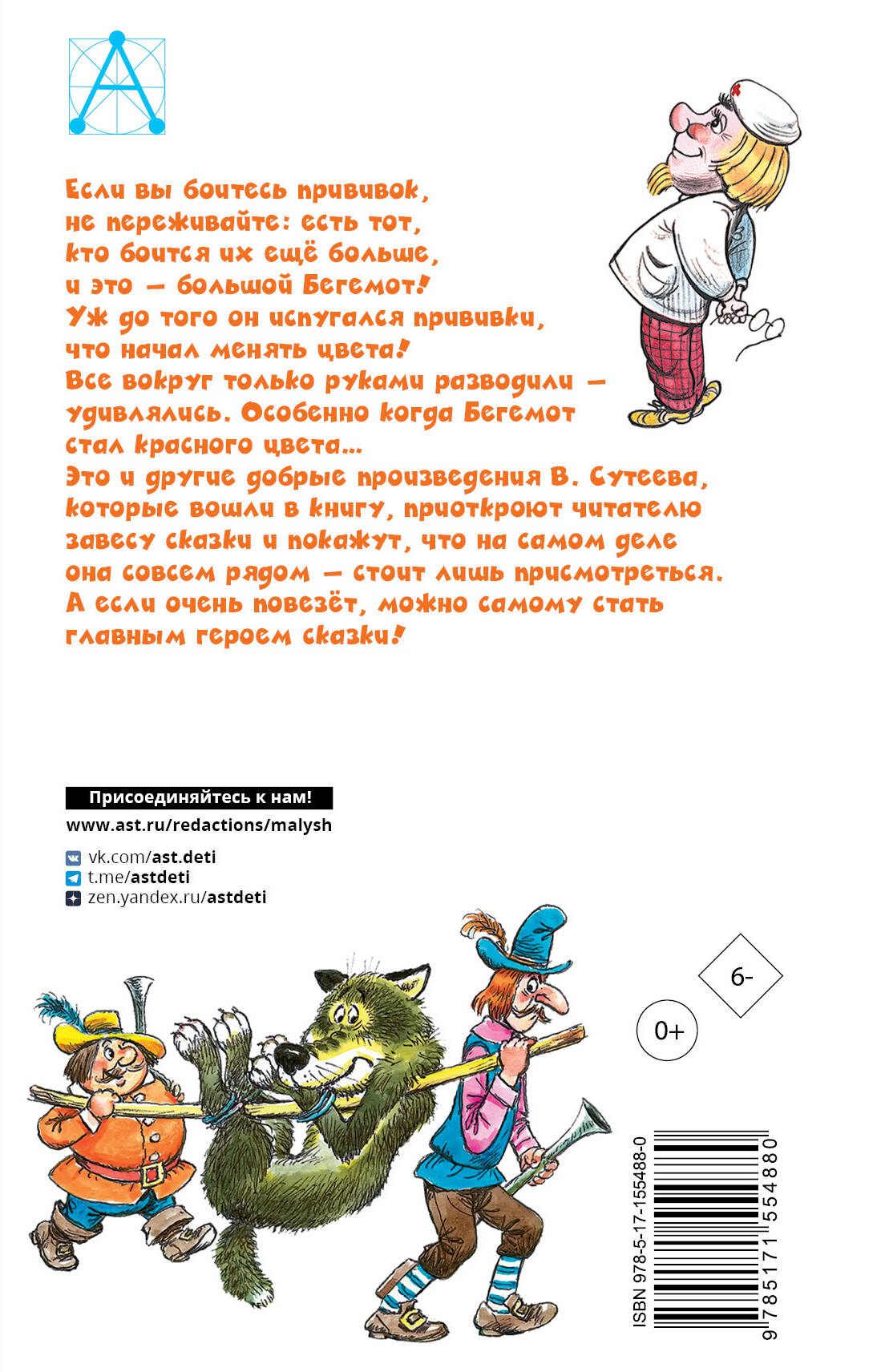 Если вы боитесь прививок, не переживайте: есть тот, кто боится их ещё больше, и это - большой Бегемот! Уж до того он испугался прививки, что начал менять цвета! Все вокруг только руками разводили - удивлялись. Особенно когда Бегемот стал красного цвета… Это и другие добрые произведения В. Сутеева, которые вошли в книгу, приоткроют читателю завесу сказки и покажут, что на самом деле она совсем рядом - стоит лишь присмотреться. А если очень повезёт, можно самому стать главным героем сказки!| Издательство | ИЗДАТЕЛЬСТВО "АСТ" |