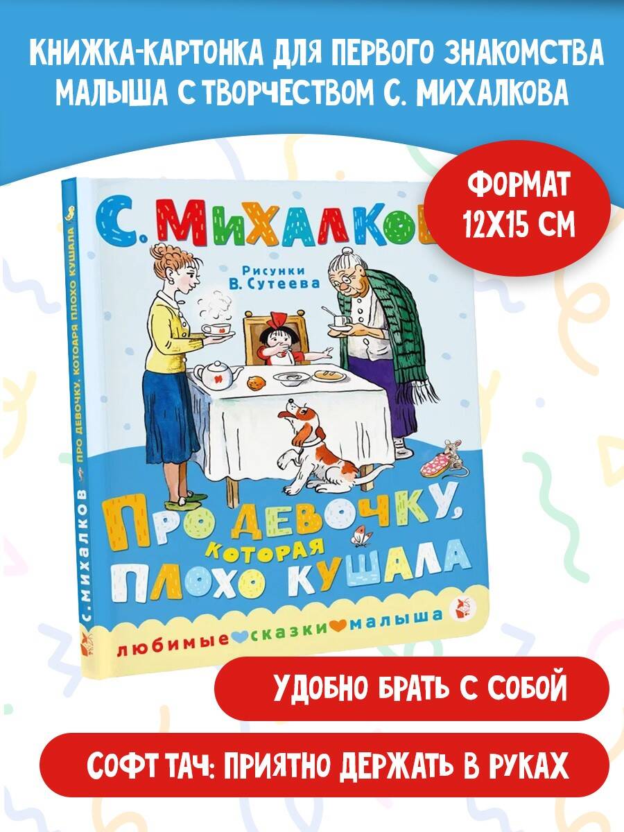 Жила-была девочка Юлечка, которую мама с бабушкой никак не могли накормить. Что ни предлагали они Юле - суп, котлеты, даже бутерброды, - ничего не хотела девочка кушать! И однажды пришёл к ним доктор, который смог девочке помочь. А вы хотите научить ребёнка хорошо и вовремя кушать? Тогда читайте эту книжку! С. В. Михалков и В. Г. Сутеев - классики отечественной детской литературы. Стихотворение "Про девочку, которая плохо кушала", дополненное простыми, динамичными иллюстрациями, идеально подойдет для первого знакомства с книгой. Эта книга предназначена именно для малышей: в ней яркие рисунки и крупные буквы, плотный картон не порвется при чтении, а скругленные уголки не повредят маленькие пальчики.