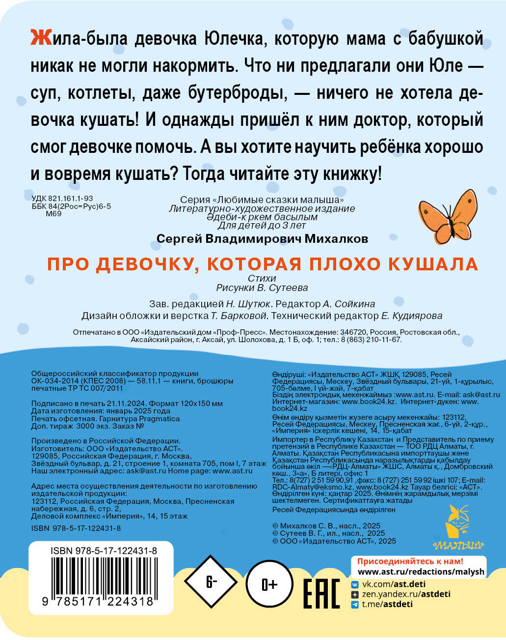 Аннотация: Про девочку, которая плохо кушала. Рис. В. Сутеева