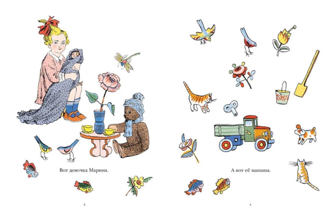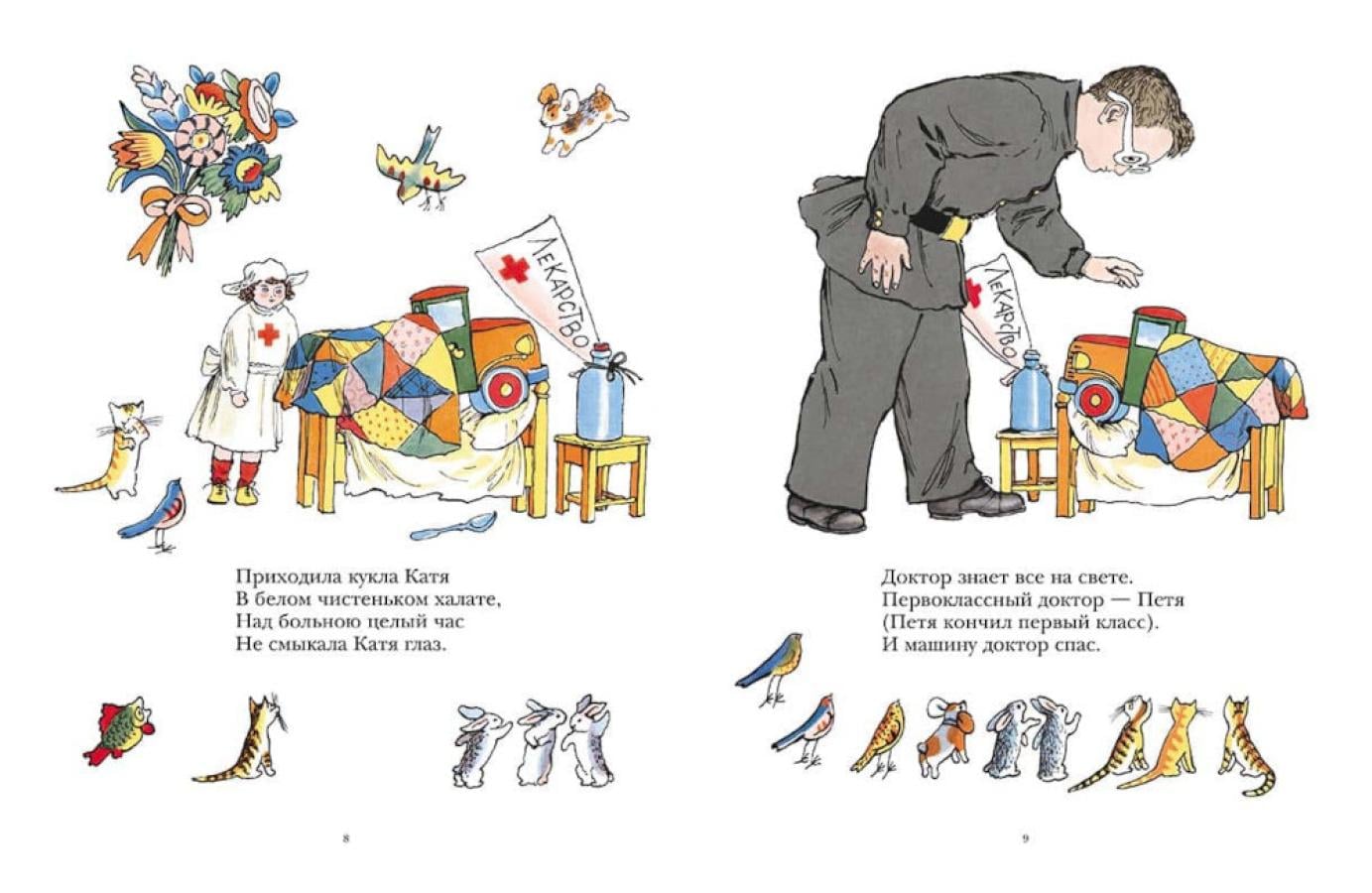 Все у заботливой Марины хорошо и правильно: кукла в пелёнке, мишка в шапочке, чай подан. Но вот беда: замечательный грузовичок заболел и отказывается есть, пить и спать. Ни конфеты, ни лекарства, ни забота и ласка не помогают его выздоровлению. И тут появляется нужный человек Петя. Конечно же, только мальчик может понять истинную причину болезни: машина должна двигаться и перевозить грузы, и тогда прочь болезни! А для этого её надо всего лишь завести ключиком.| Издательство | Мелик-Пашаев |
