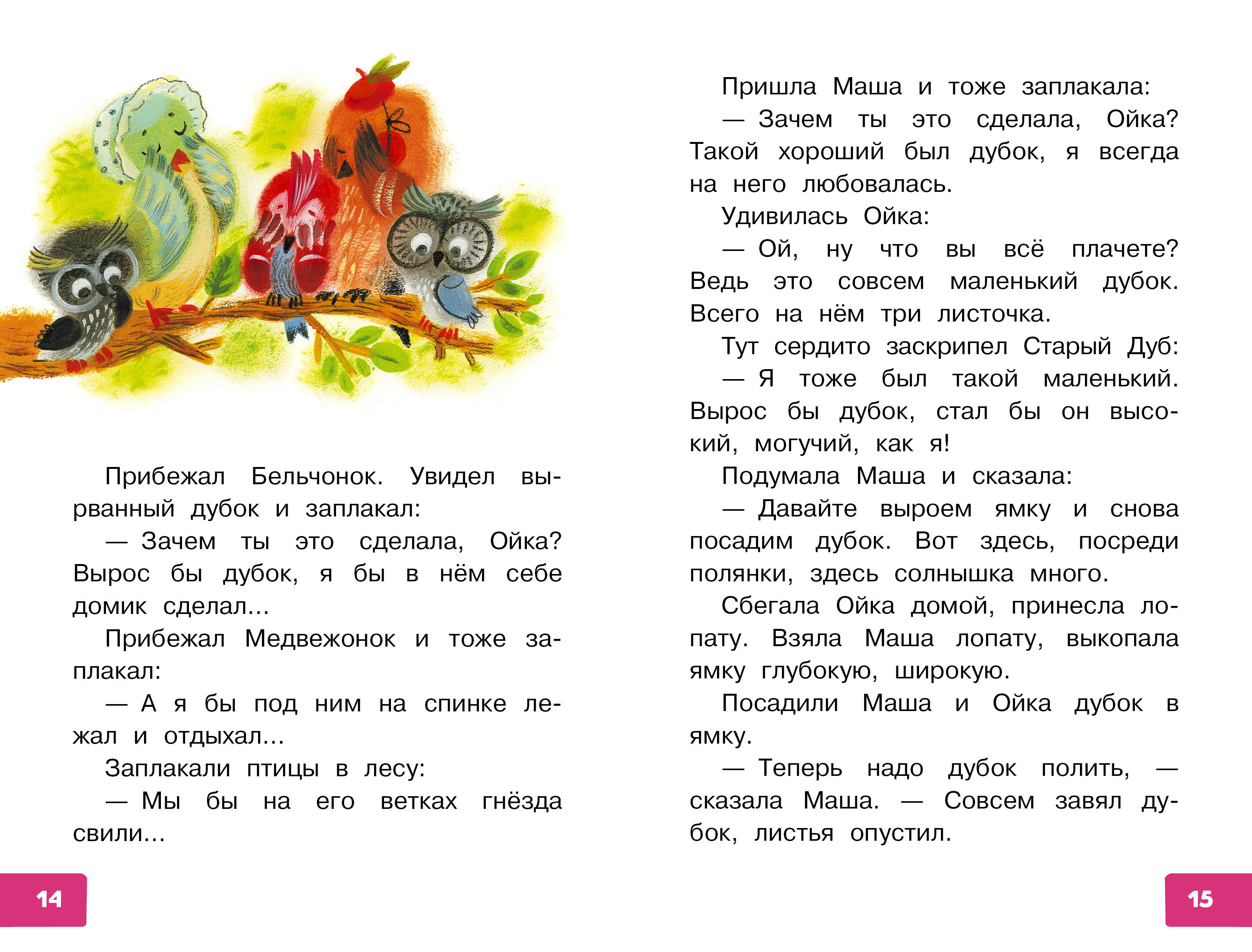 Ж или-дружили Маша и Ойка. Ойка - потому что всё время ойкала: «Ой, не хочу! Ой, не могу! Ой, не буду!» Разбила Ойка как-то в гостях красивую Зайчихину чашку и не признаётся. Увидала это в окошке Лесная Птица и сказала Ойке, что она врунишка и что её выдали красные ушки... Не хотелось Ойке, чтобы ушки её были красными, пришлось признаться. И добрая Зайчиха усадила девочку за стол и угостила чаем с вишнёвым вареньем. Если бы не честные Ойкины ушки, ещё неизвестно, чем бы закончилась сказка...| Издательство | Издательство "АСТ" |