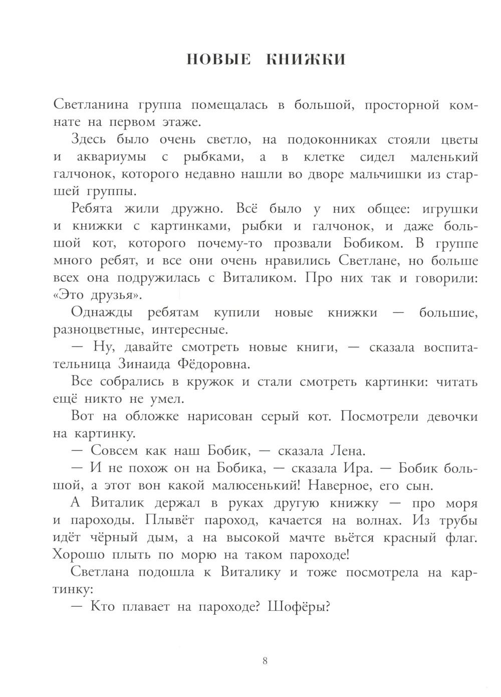 Главная героиня рассказов Сергея Баруздина - маленькая девочка Светлана, которая ходит в детский сад, растёт и с каждым днем узнаёт что-то новое - о городе, в котором живёт, о метро, о маминой работе, о буквах, из которых складывают слова. Книга прекрасно иллюстрирована художником Георгием Фитингофом. Рекомендуется детям дошкольного возраста.| Издательство | Мелик-Пашаев |