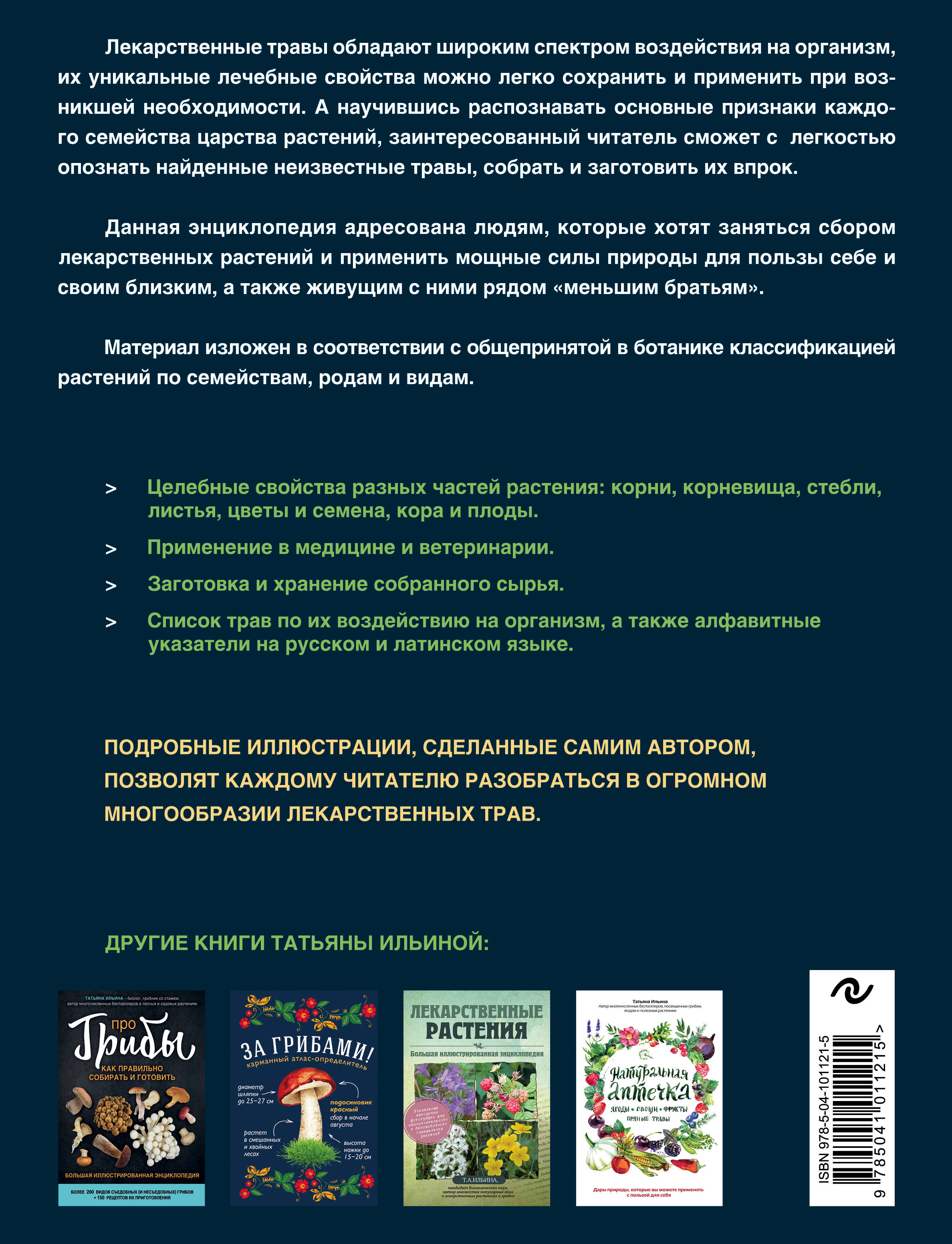 Об авторе: Татьяна Александровна Ильина - кандидат биологических наук, грибник со стажем, автор многочисленных бестселлеров о лесных и садовых растениях. О чем: Сбор, заготовка и применение более 230 видов лекарственных трав. Целебные свойства разных частей растения, способы применения в лечебных целях, а также их заготовка и консервирование. Особенности: Множество цветных фотографий, сделанных самим автором, помогут каждому читателю разобраться в большом многообразии лекарственных трав.| Издательство | ООО "Издательство "Эксмо" |