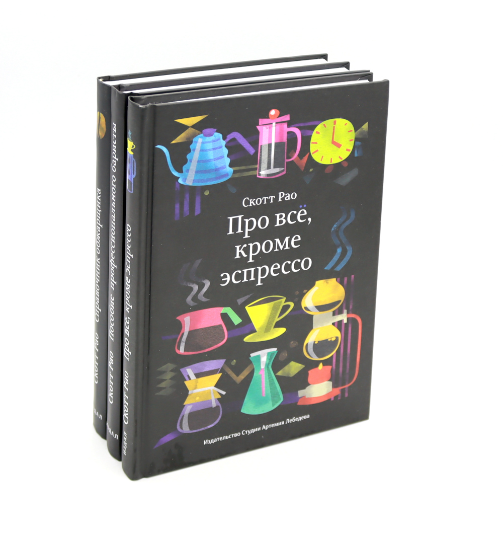 Комплект из 3 книг: «Про всё, кроме эспрессо» Эта книга - полный справочник по приготовлению фильтрового кофе. Отдельные главы посвящены капельному завариванию - в автоматических кофеварках и вручную в пуровере или кемексе, - а также приготовлению во френч-прессе и в сифоне. «Пособие профессионального баристы» Книга содержит всю необходимую информацию и множество полезных советов по приготовлению эспрессо, капучино, латте, а также по организации работы кофейни. Пособие базируется на обширном личном опыте автора и подкреплено ссылками на солидные исследования в области кофе. Все инструкции настолько подробны, практичны и наглядны, что ими с легкостью воспользуются даже новички. Издание отлично проиллюстрировано и будет интересно и профессионалам, и многочисленным энтузиастам приготовления кофе в домашних условиях. В русский перевод не вошла глава о заваривании чая. «Справочник обжарщика» Издание посвящено тем предварительным этапам, которые проходит кофе, прежде чем из него начнут готовить напиток - от транспортировки сырых зерен до хранения уже обжаренных. Автор не сводит свой обширный опыт к четким правилам, но делится важными принципами - следование этим принципам поможет профессионалам быстрее добиться идеальной обжарки зерен и стабильно поддерживать высокий результат. .Подробно визуализированная техническая информация позволяет лучше понимать физические процессы, происходящие с зерном при разных способах обжарки, и применять выводы на практике в зависимости от ростера и сорта зерен.| Издательство | Изд. Студии Артемия Лебедева |