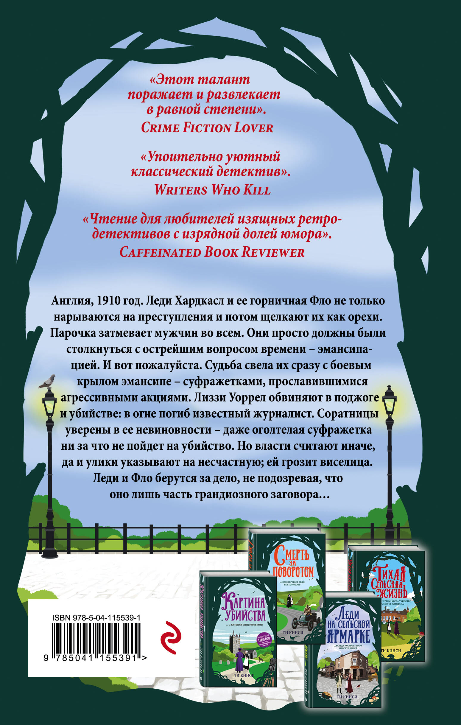 Продано более 1 000 000 книг о леди Хардкасл и Флоренс Армстронг. Англия, 1910 год. Леди Хардкасл и ее горничная Фло не только нарываются на преступления и потом щелкают их как орехи. Парочка затмевает мужчин во всем. Они просто должны были столкнуться с острейшим вопросом времени - эмансипацией. И вот, пожалуйста. Судьба свела их сразу с боевым крылом эмансипе - суфражистками, прославившимися агрессивными акциями. Лиззи Уоррел обвиняют в поджоге и убийстве: в огне погиб известный журналист. Соратницы уверены в ее невиновности - даже оголтелая суфражистка ни за что не пойдет на убийство. Но власти считают иначе, да и улики указывают на несчастную; ей грозит виселица. Леди и Фло берутся за дело, не подозревая, что оно - лишь часть грандиозного заговора… Неуклонно следовать золотым стандартам Кристи и Конан Дойла - и одновременно смело выворачивать их наизнанку… Невозможно? А вот и нет! Cамородок британского детектива виртуозно доказывает обратное. Сочетание классической головоломной интриги и потрясающего современного юмора - стихия Кинси. «Этот талант поражает и развлекает в равной степени». - Crime Fiction Lover «Упоительно уютный классический детектив». - Writers Who Kill «Чтение для любителей изящных ретро-детективов с изрядной долей юмора». - Сaffeinated Book Reviewer «Прекрасный язык, полный каламбуров и аллюзий, которые подарят наслаждение их ценителям и нисколько не испортят удовольствие остальным». - Fangirl Nation| Издательство | ООО "Издательство "Эксмо" |