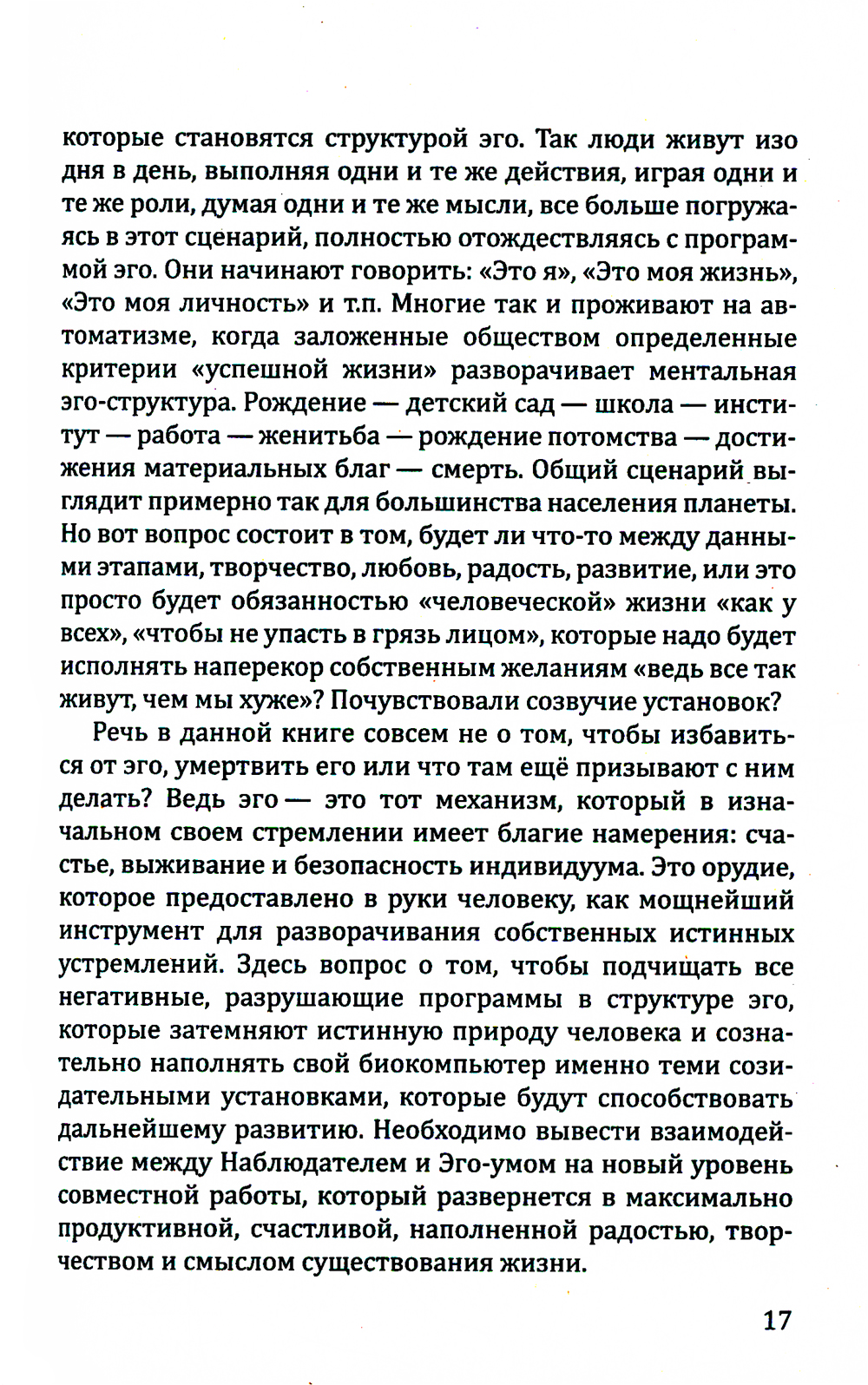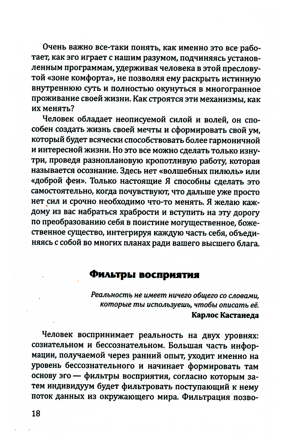 Книга «Эго не равно Я» является первым томом серии «Квантовое сознание». Данная книга - это инструкция, способствующая расширению сознания на каждом уровне развития эго по спирали. Так, проходя шаг за шагом, человек способен выйти за все рамки внутренних ограничений и раздвинуть свои горизонты, научиться созидательно строить свою жизнь, развить свои таланты и открыть неограниченный внутренний потенциал. Это максимально практическая книга, собравшая в себе огромное количество рекомендаций, упражнений и практик, способствующих расширению сознания на каждом этапе развития эго и быстрейшему переходу по уровням его созревания. Также в ней вы познакомитесь с поистине невероятными инструментами по работе с собственным подсознанием, научитесь различать негатив, отделять его от себя и очищаться. А также обретете инструменты по перепрограммированию своего мышления, что раскроет перед вами неограниченные возможности самотрансформации и самореализации. Для широкого круга читателей, идущих путем духовного развития и интересующихся психологией.