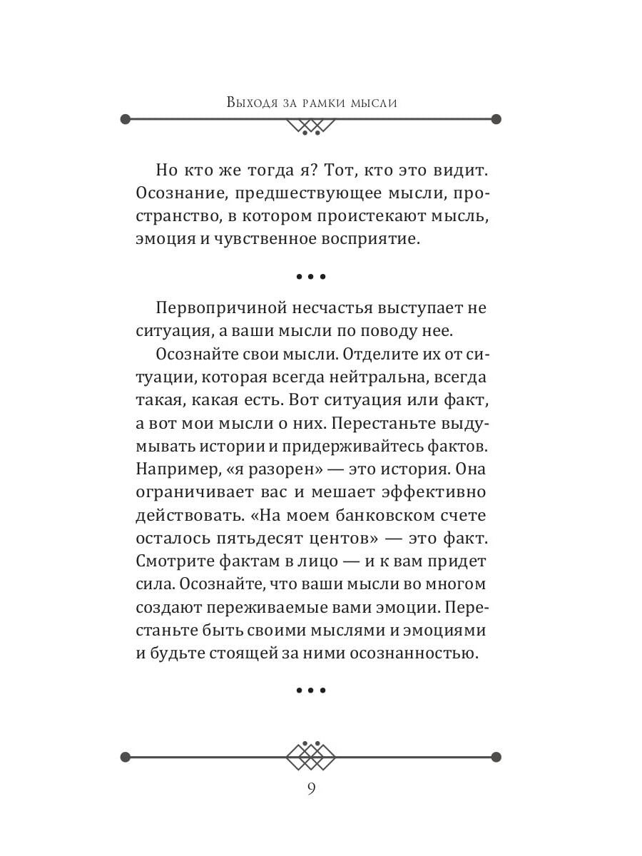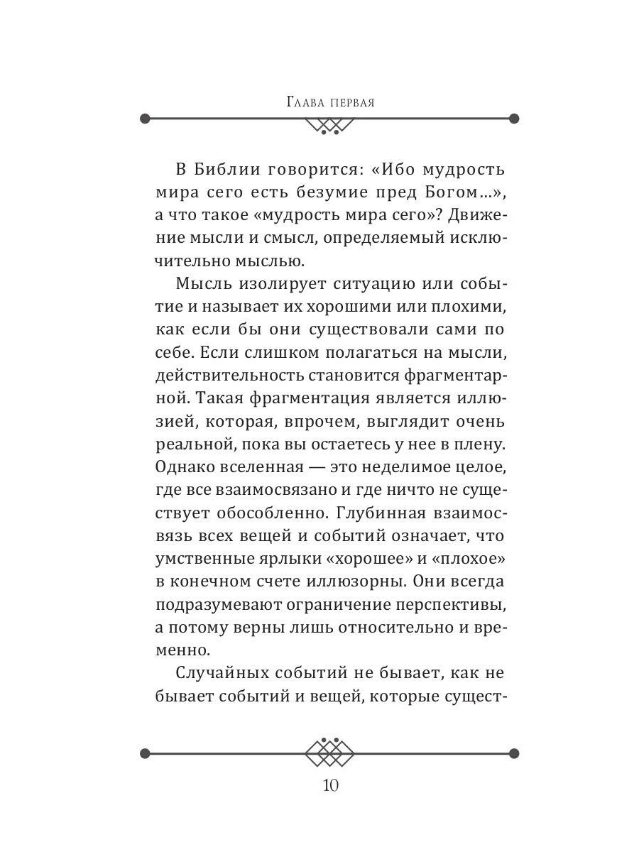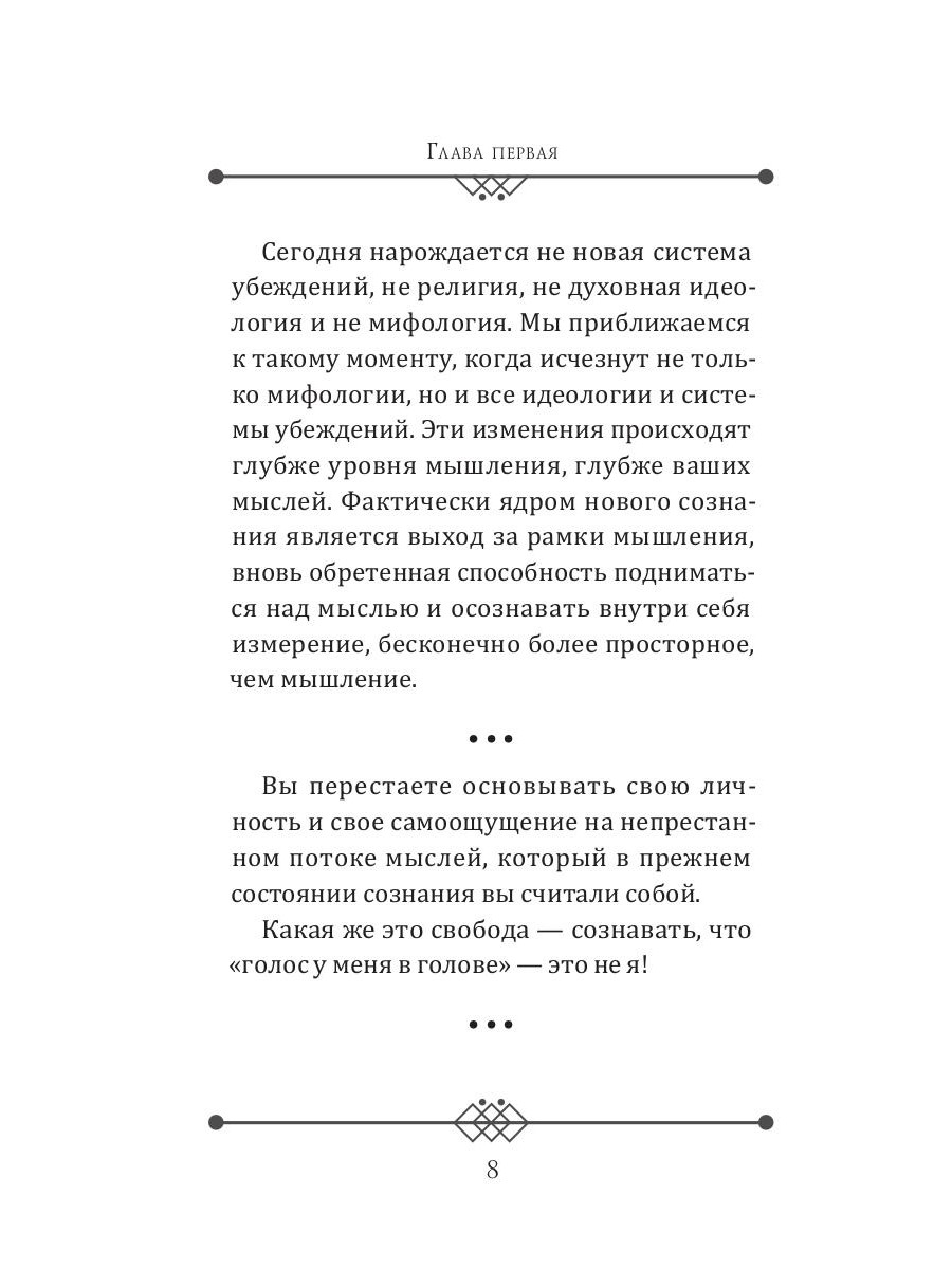 Экхарт Толле - один из наиболее ярких духовных наставников современности. В своих сочинениях и на семинарах он предлагает простое, но глубокое послание людям вне зависимости от их религиозной, этической или политической принадлежности. Воззрения Экхарта Толле - простая и вневременная попытка открыть человеку дорогу от страданий к миру. Постоянно путешествуя и совершенствуясь, Толле открывает новые горизонты человеческого сознания и самоопределения; оттого его мысли отличаются ясностью древних духовных учителей и своей непревзойденной афористичностью.| Издательство | Рипол Классик |